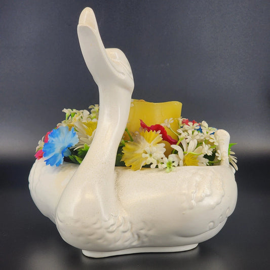 Hull Pottery Happy Duck Planter Floral 23 Matte White Swan Figurine Large USA