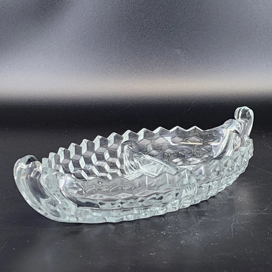 Fostoria American Oval Relish Dish 2-Part Divided Boat Clear Glass Cubist 11"