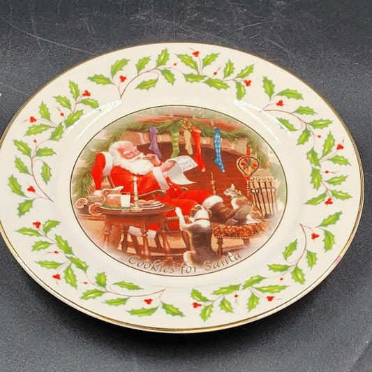 Lenox Holiday Cookie Plate Christmas Cookies for Santa Holly Berry Gold Rim 9.5"