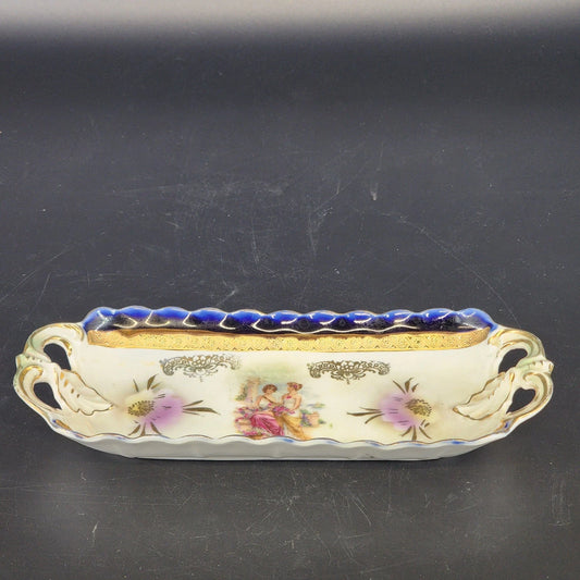 German Porcelain Celery Tray Cobalt Blue Gold Roman Ladies Scene 1900's Antique