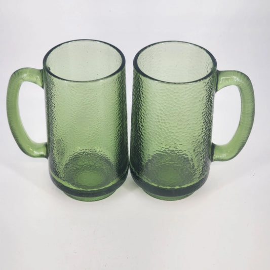 Finlandia Avocado Green Glass Mugs Set of 3 Anchor Hocking D Handles 12 oz 5.5"h