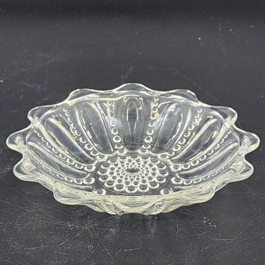 Clear Glass Hobnail Serving Bowl Scalloped Edge 6.5" Round Candy Dish Vintage