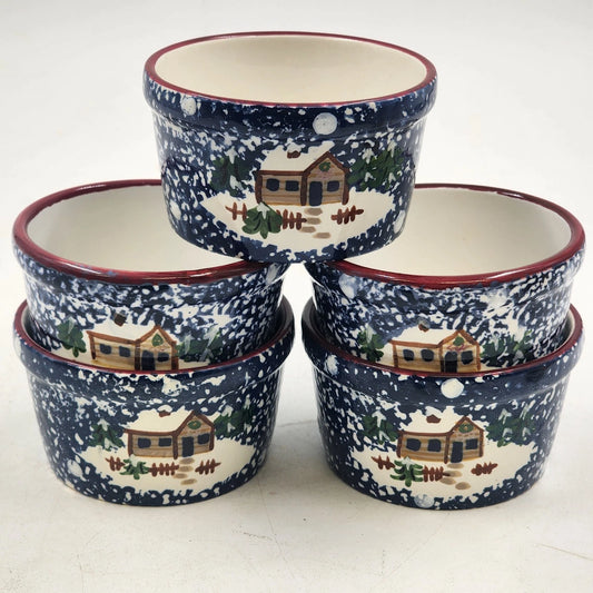 5 Cook's Bazaar Ceramic Ramekins Snack Dishes Holly Mountain Lodge Sponged Paint