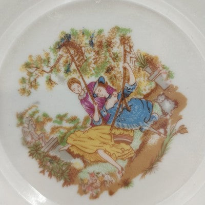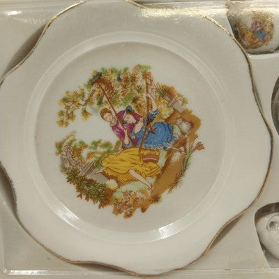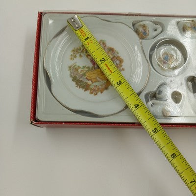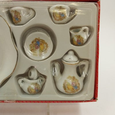 10pc Mini Tea Set Porcelain Women in Garden Collectible w/ Box 3.75"