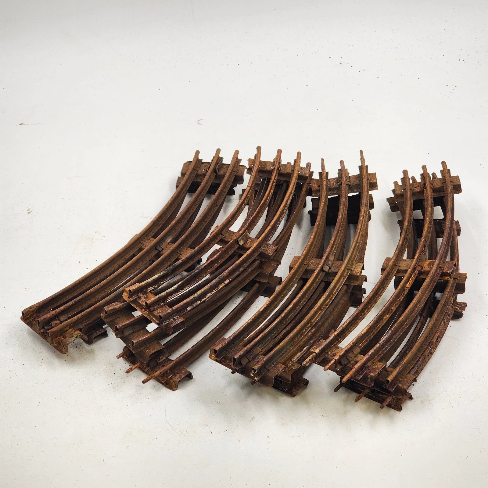 11 Model Train Curve Track Sections O Gauge 31" Diameter Brown Ties Rusty
