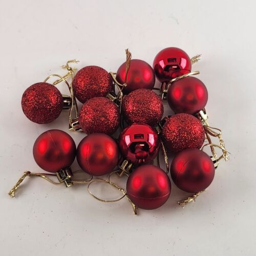 13 Red Christmas Ball Ornaments Mixed Finish Shatterproof 1" Diameter Plastic