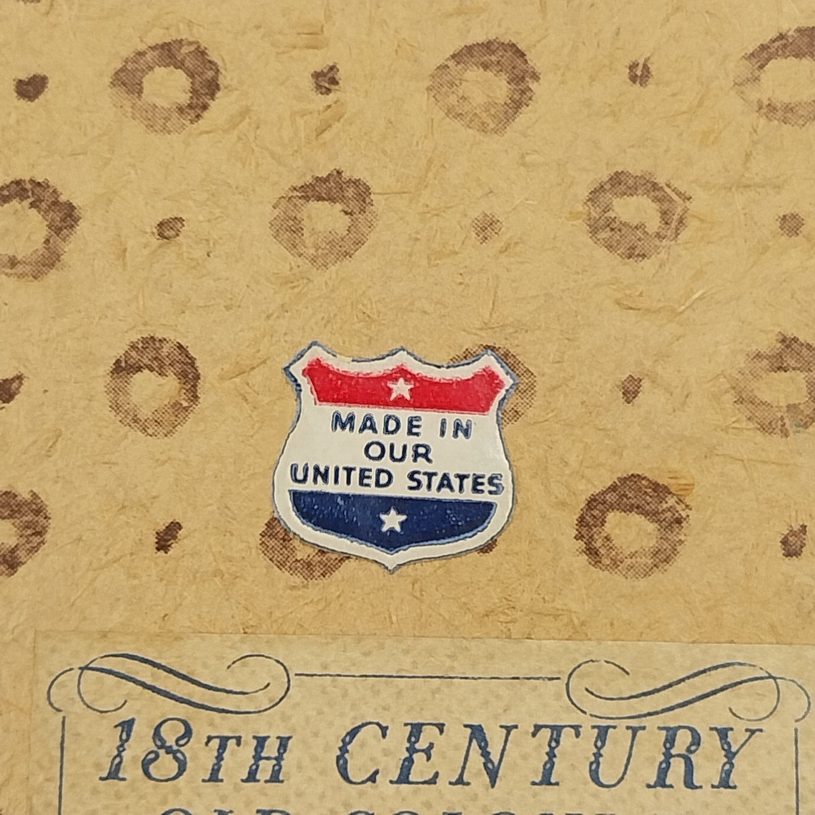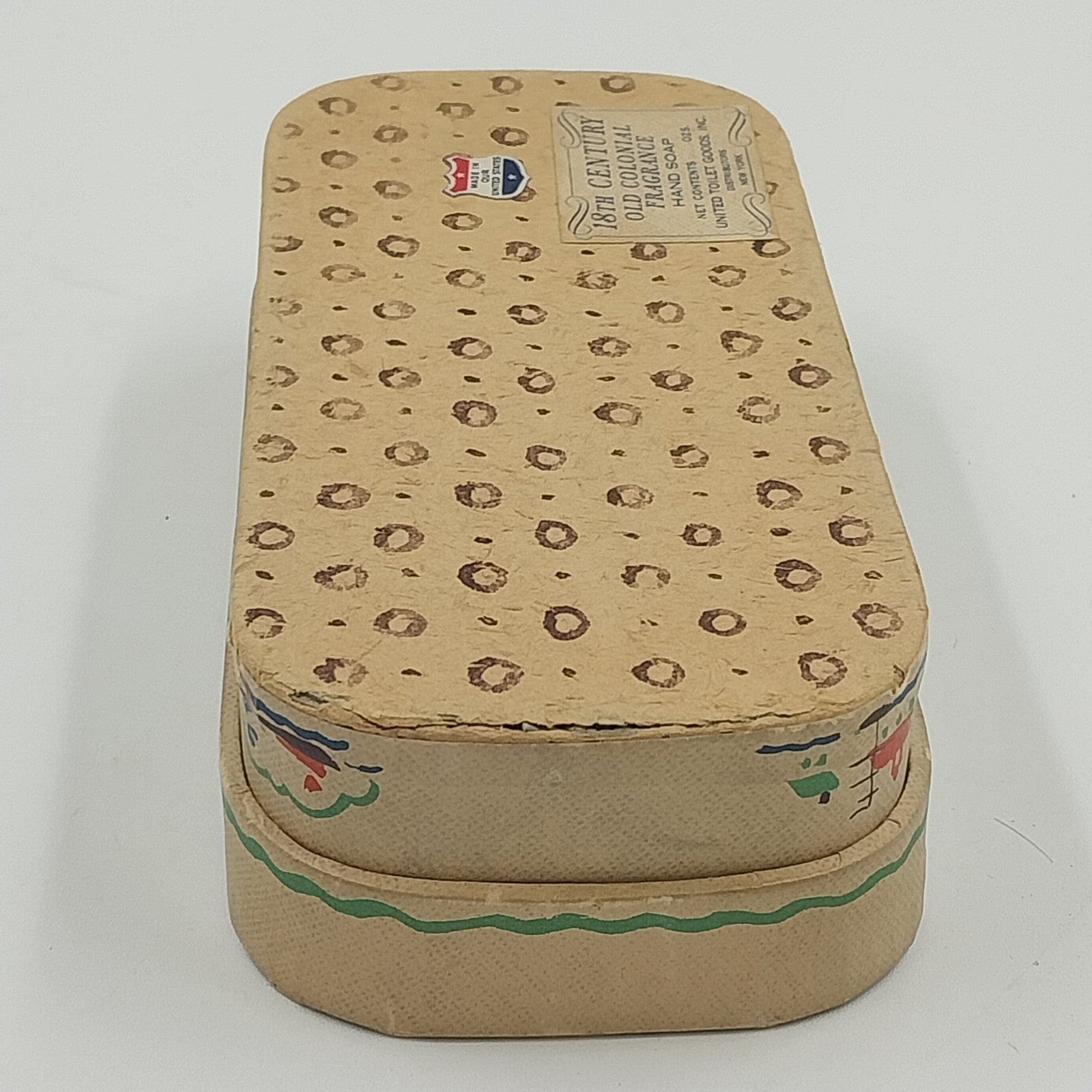This is a vintage hand soap box from United Toilet Goods, specifically the 18th Century Old Colonial Fragrance line. It likely dates back to the 1920s.
