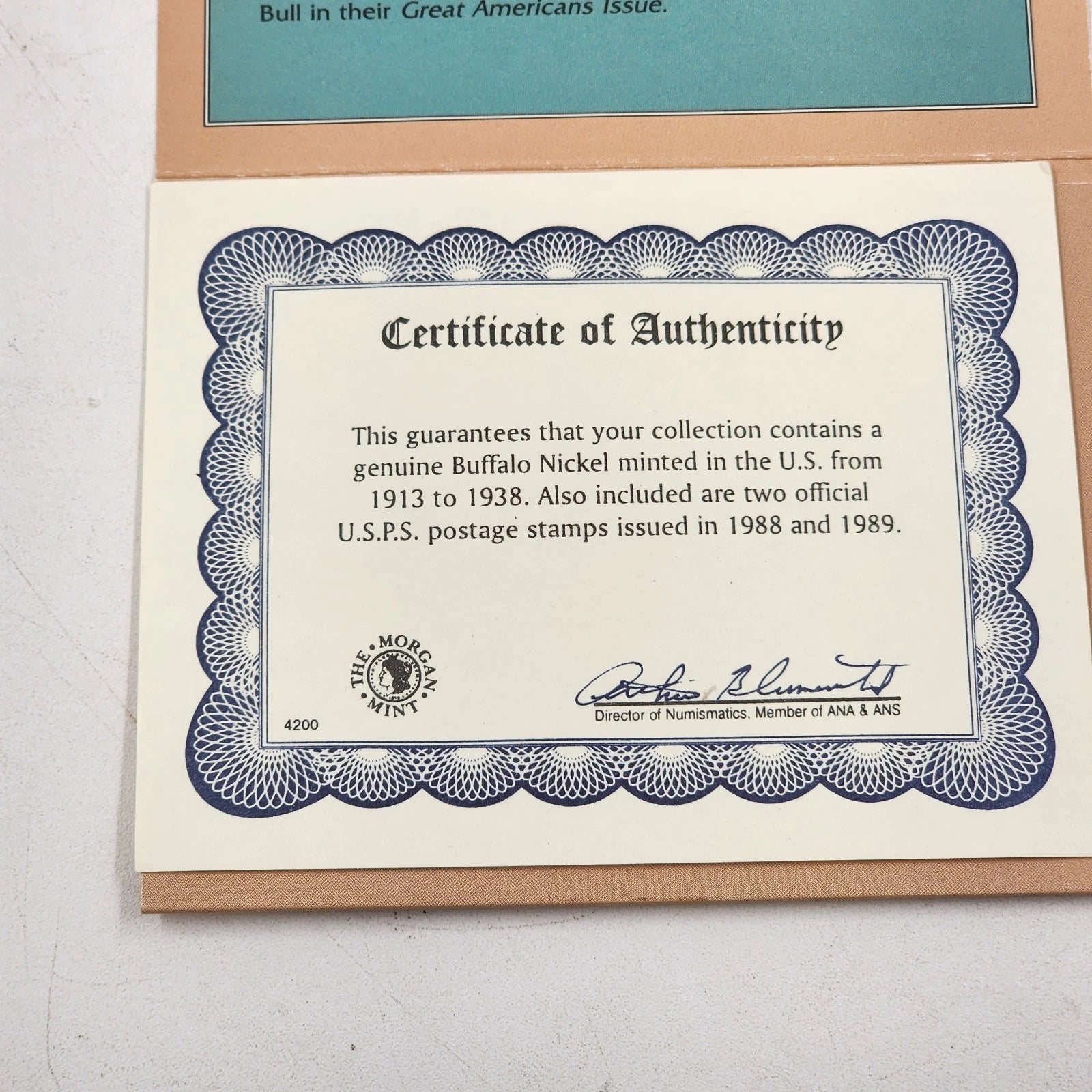 1936 Buffalo Nickel & USPS Buffalo Bill & Sitting Bull Stamp Set Folio COA 1988