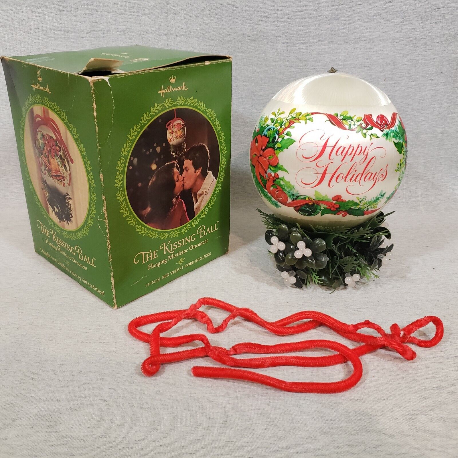 1970s Hallmark The Kissing Ball Hanging Mistletoe Ornament Satin Christmas Ball