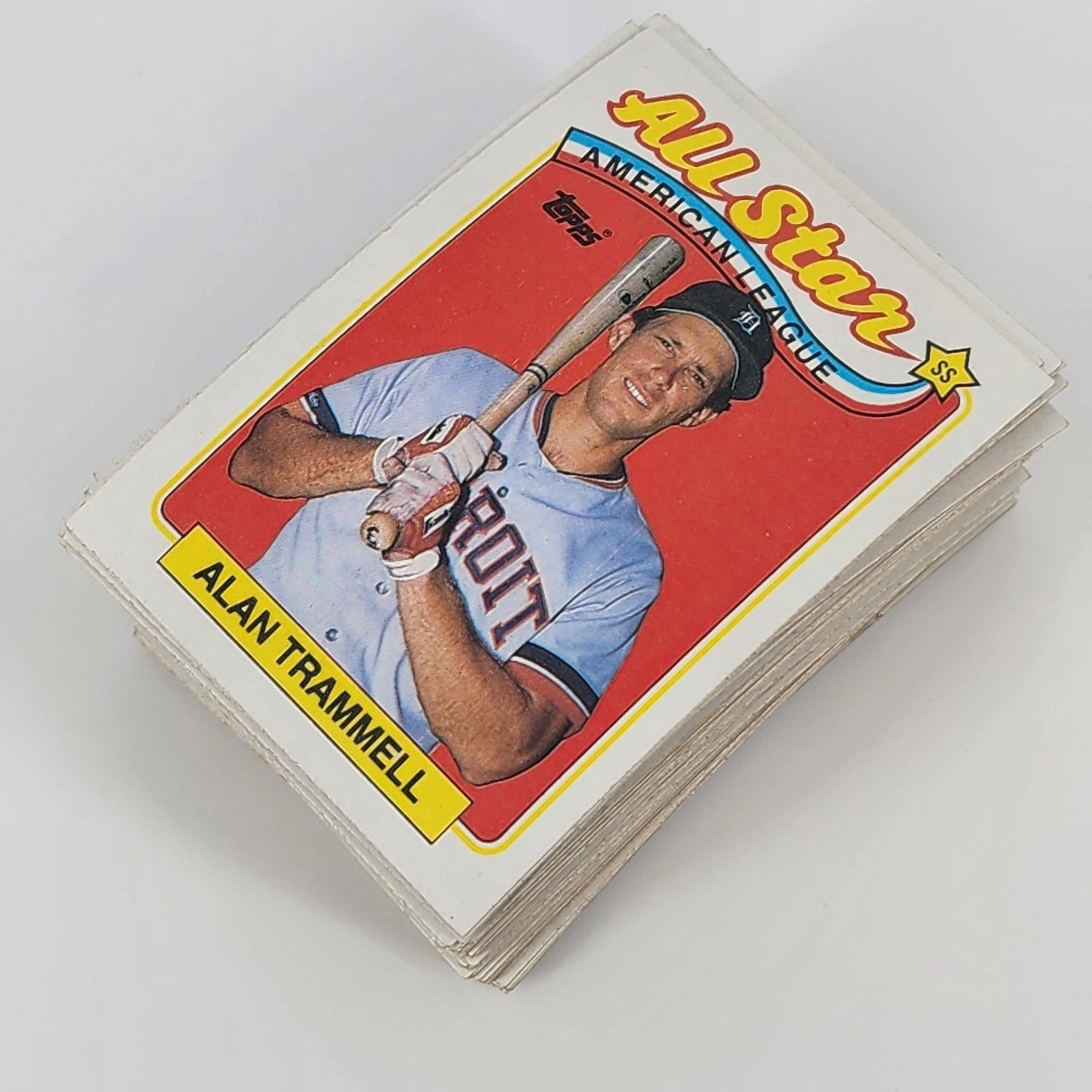 Add a significant chunk of baseball history to your collection with this 99-card lot of 1988 Topps Baseball cards. This group covers the #400 series and includes nearly the entire run (missing only #444). This specific range is loaded with talent, featuring All-Star subsets and Hall of Fame legends like Andre Dawson (#400) and Cal Ripken Jr. (#450). These cards have been safely stored in a box for over 20 years, preserving the bold colors and classic 1988 design. This is an excellent opportunity for set builders to pick up a massive block of cards in one go.