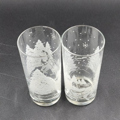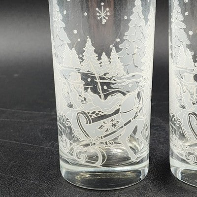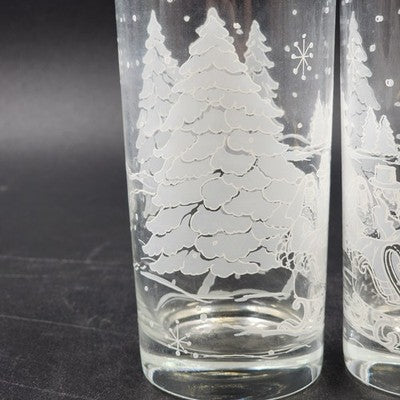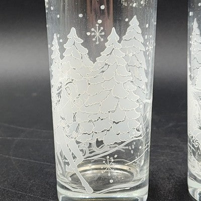 2 Avon Winter Scene Horse & Sleigh Drinking Glasses 2.8"d x 6.25"h Vintage 1995