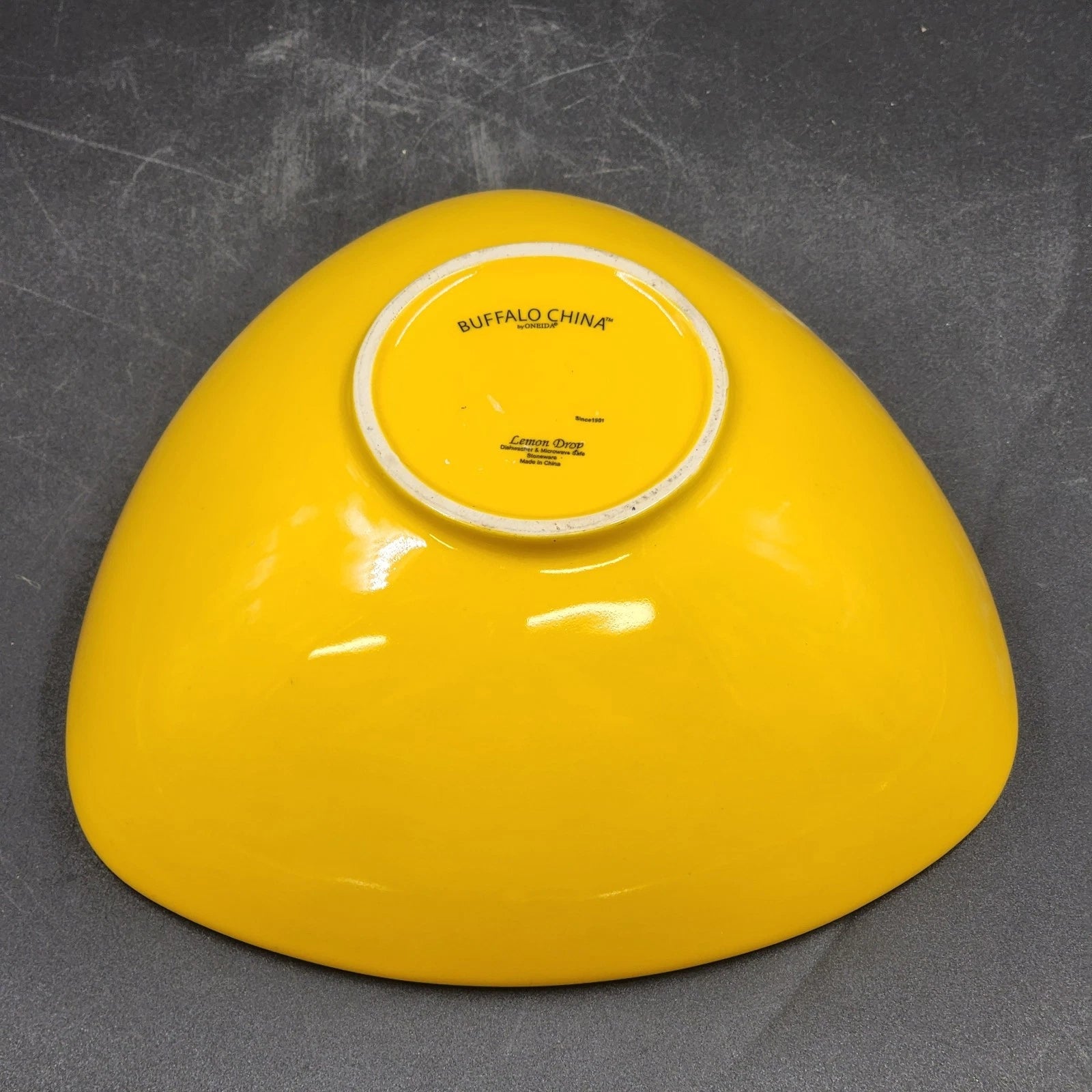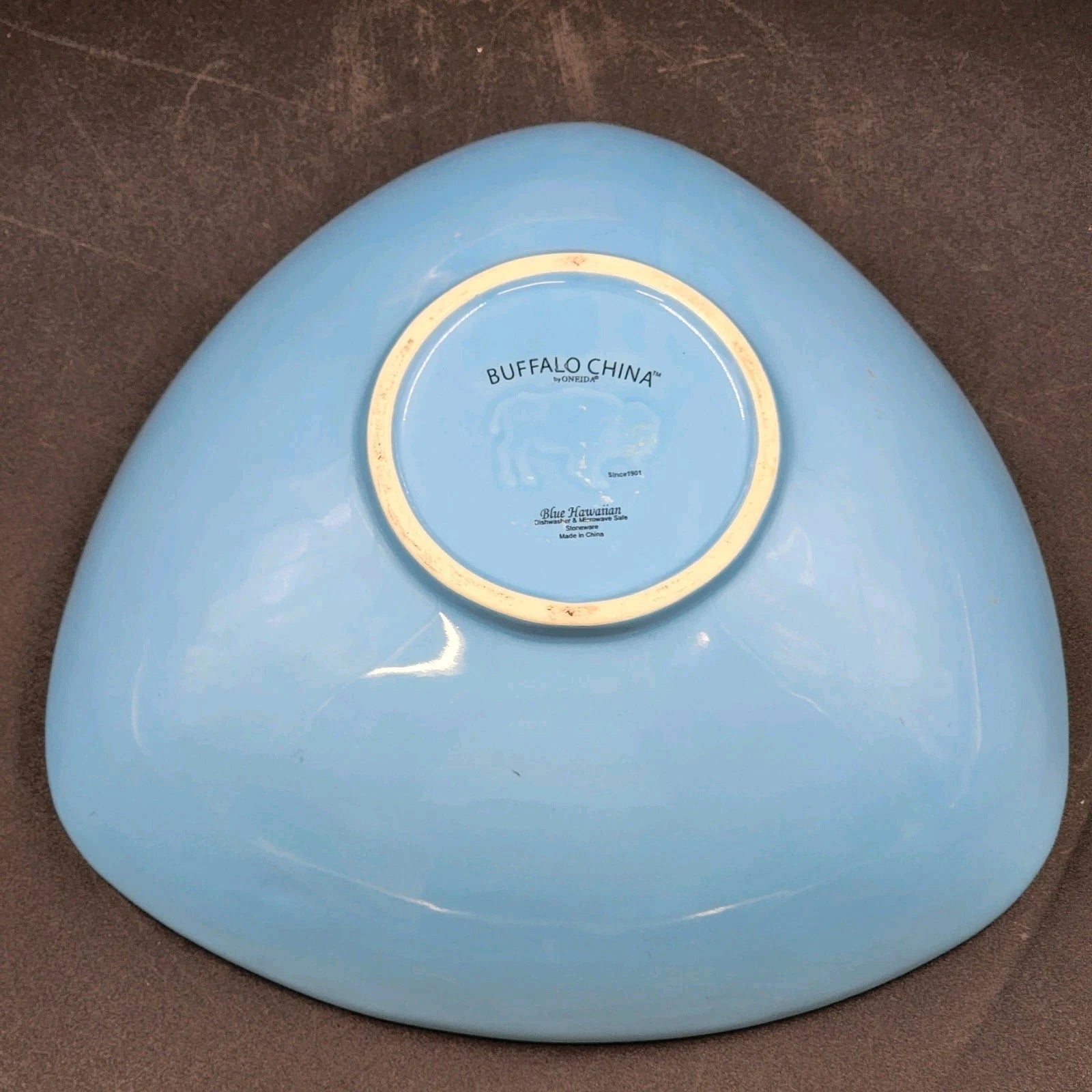 2 Buffalo China Triangle Bowls 9.25” Oneida Yellow Lemon Drop & Blue Hawaiian