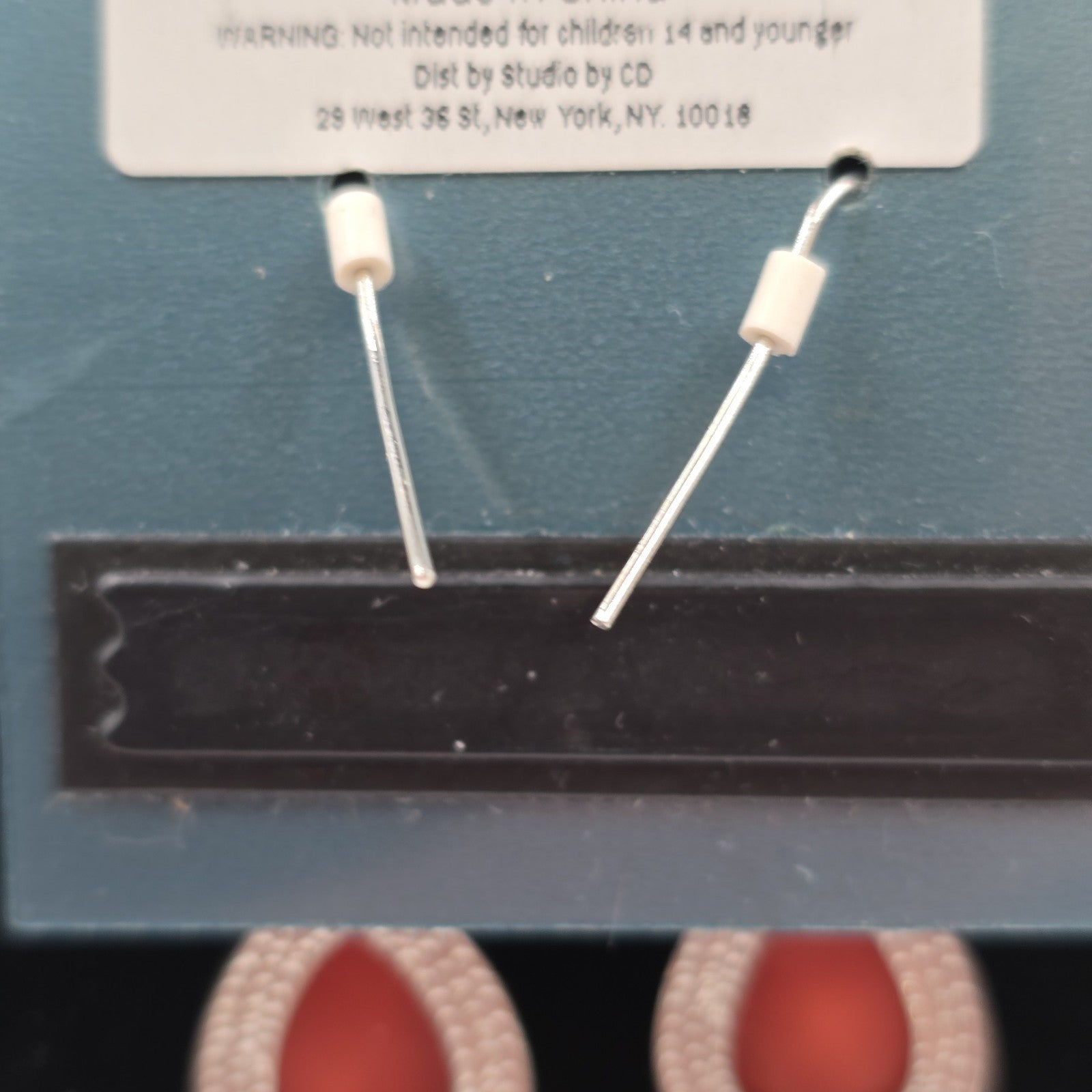 * Pair 2: Silver-tone earrings adorned with red teardrop-shaped plastic beads, adding a touch of elegance to the design. These earrings have a hook closure and an approximate dangle length of 1.25 inches.