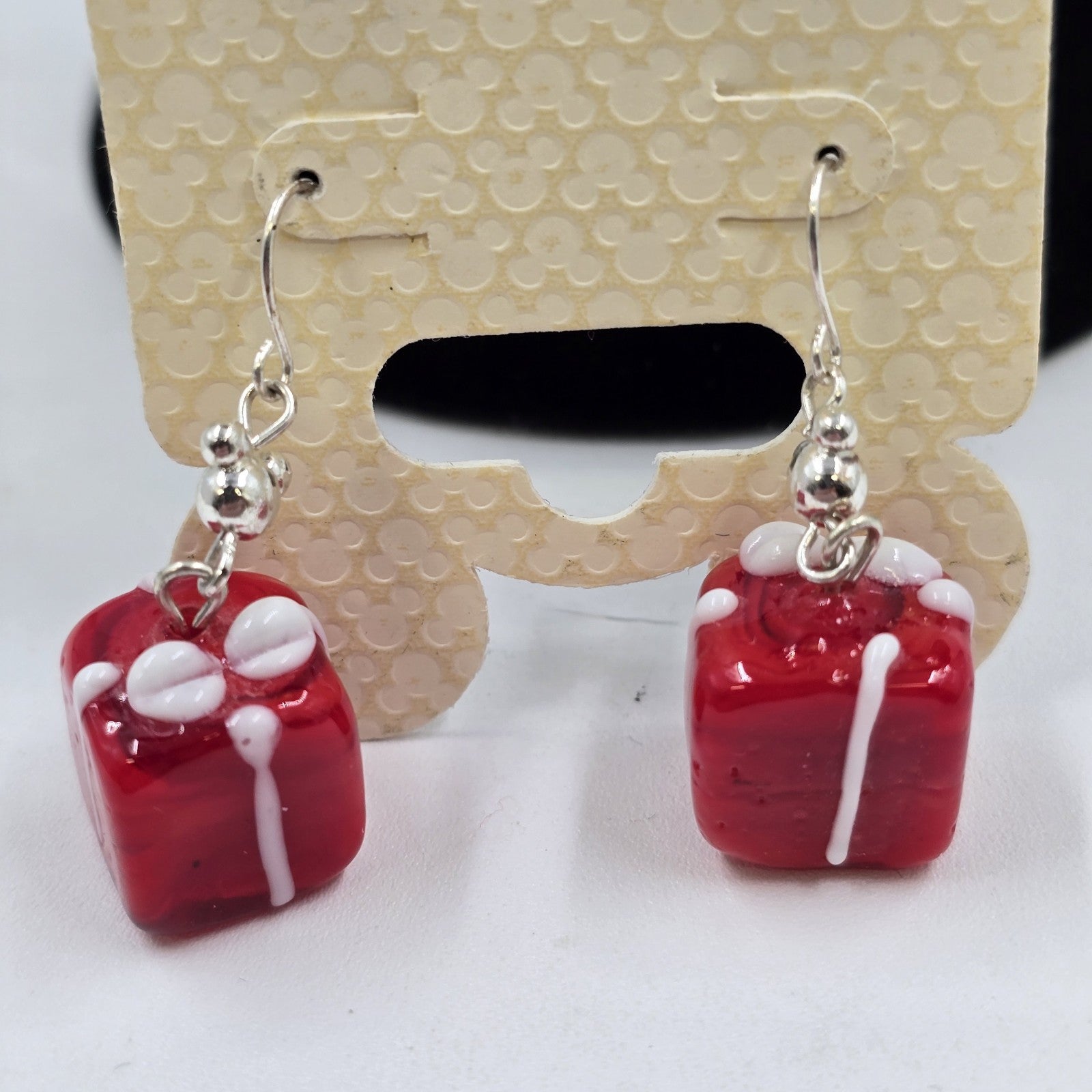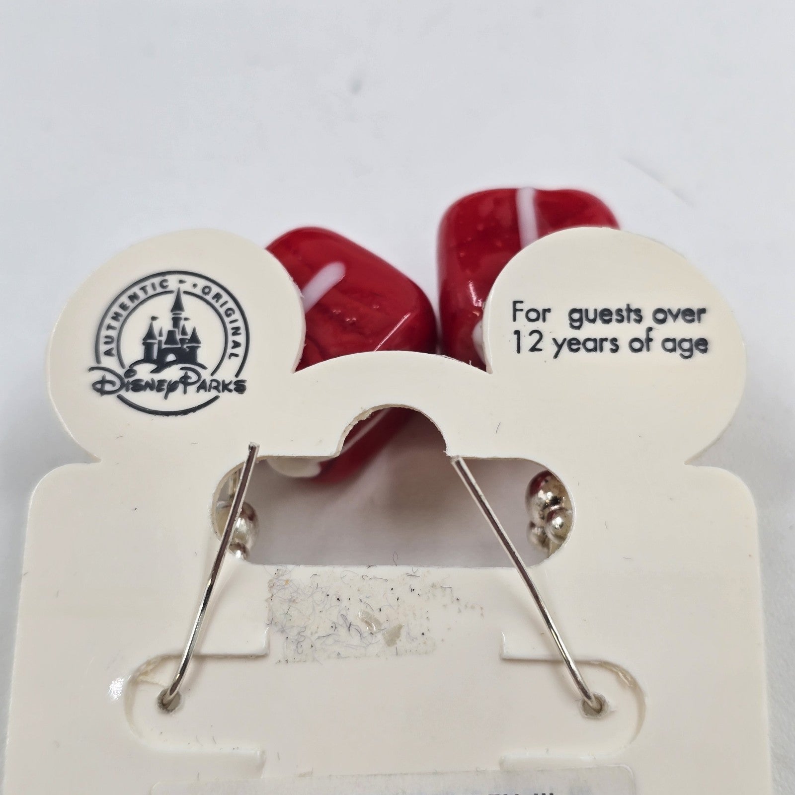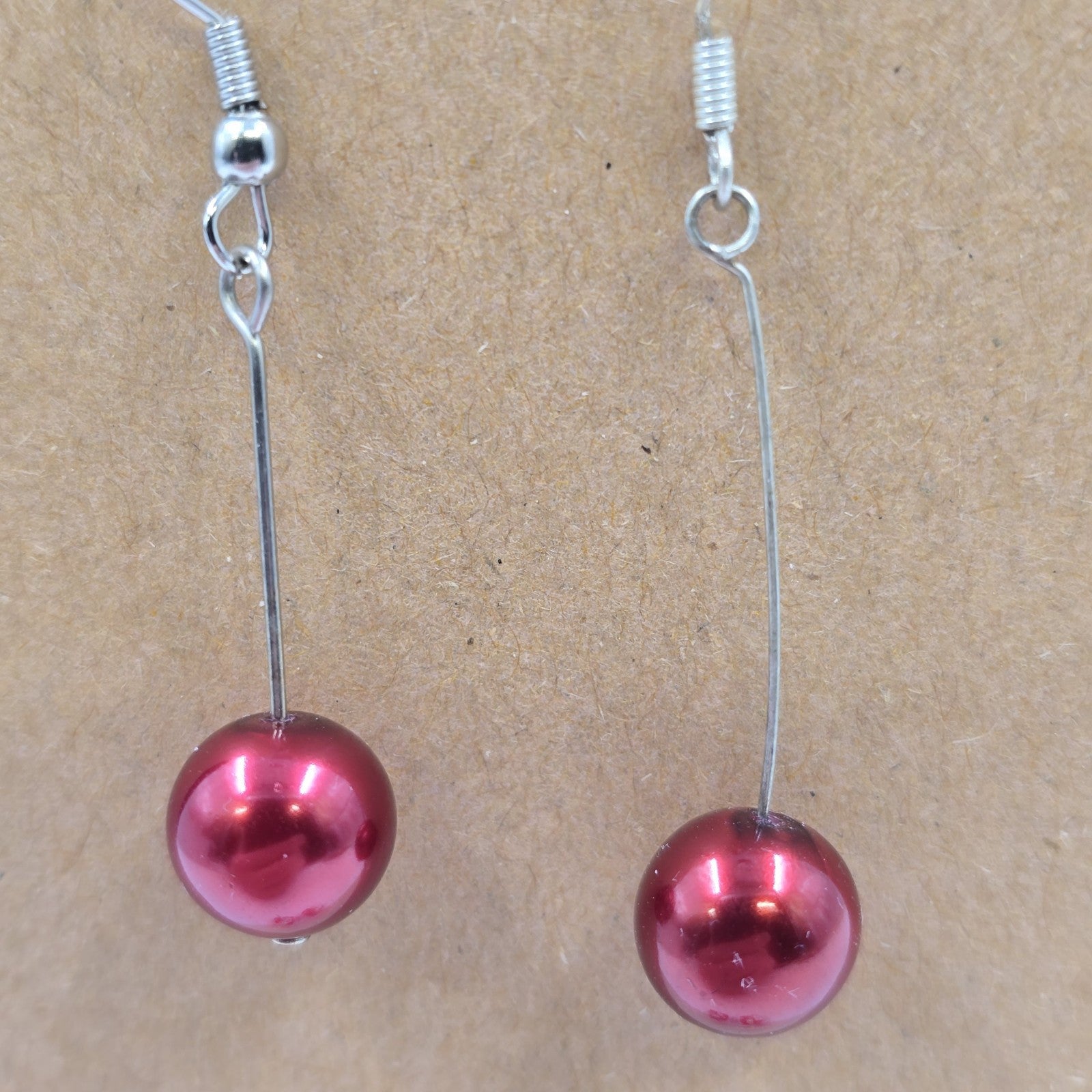 2 Earrings Silver Tone Red Faux Pearl Bead Drop & Disney Red Present Gift Dangle