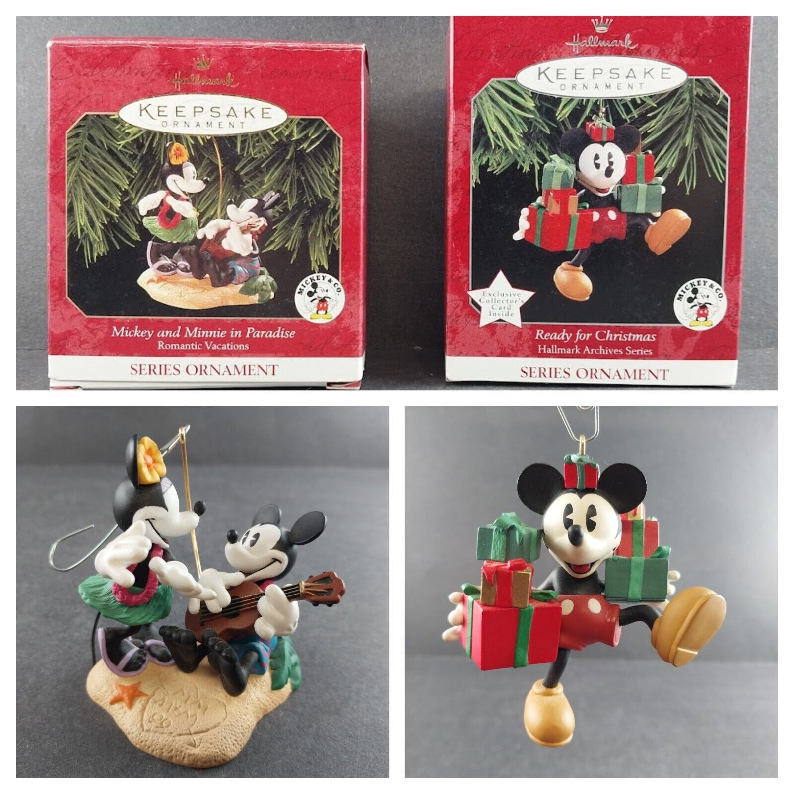 2 Hallmark Keepsake Series Christmas Ornaments from 1998 1999 Mickey and Co Vtg