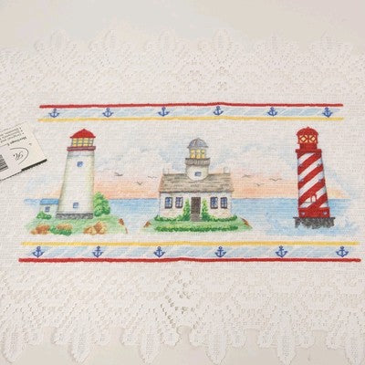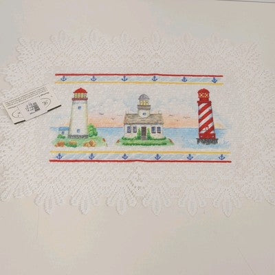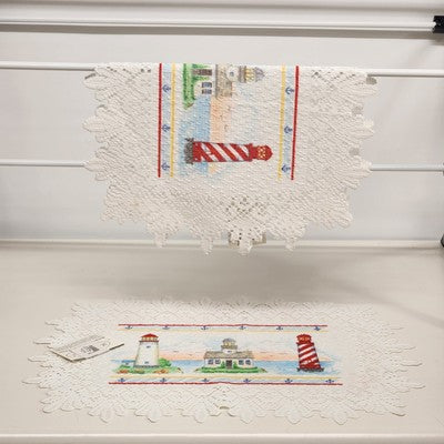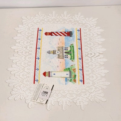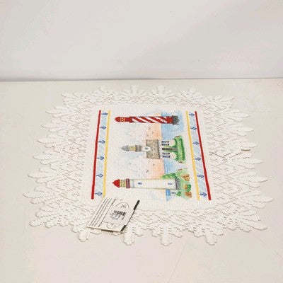 Set of 2 Heritage Lace Nautical Lighthouse Placemats 14"x20" White Polyester NWT
