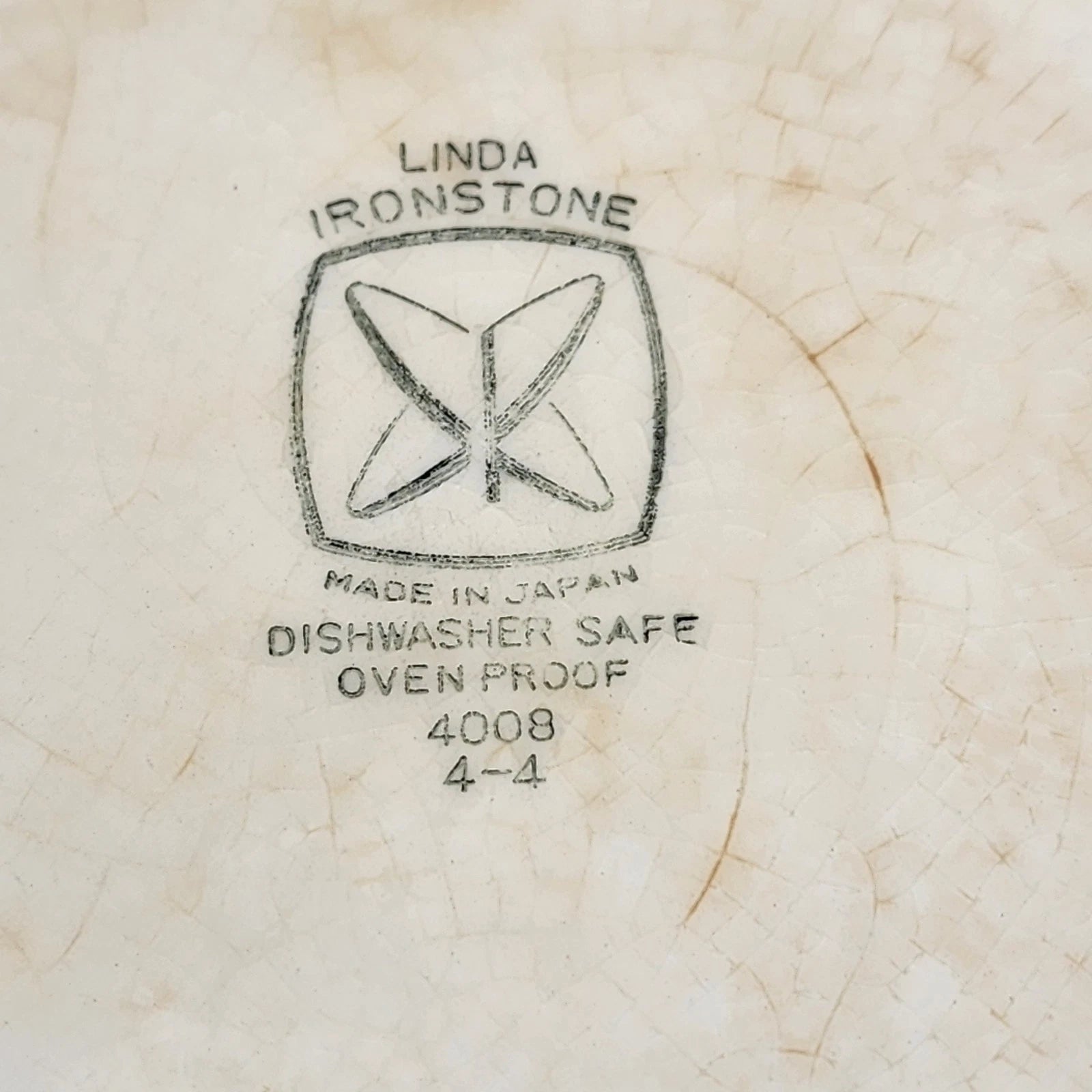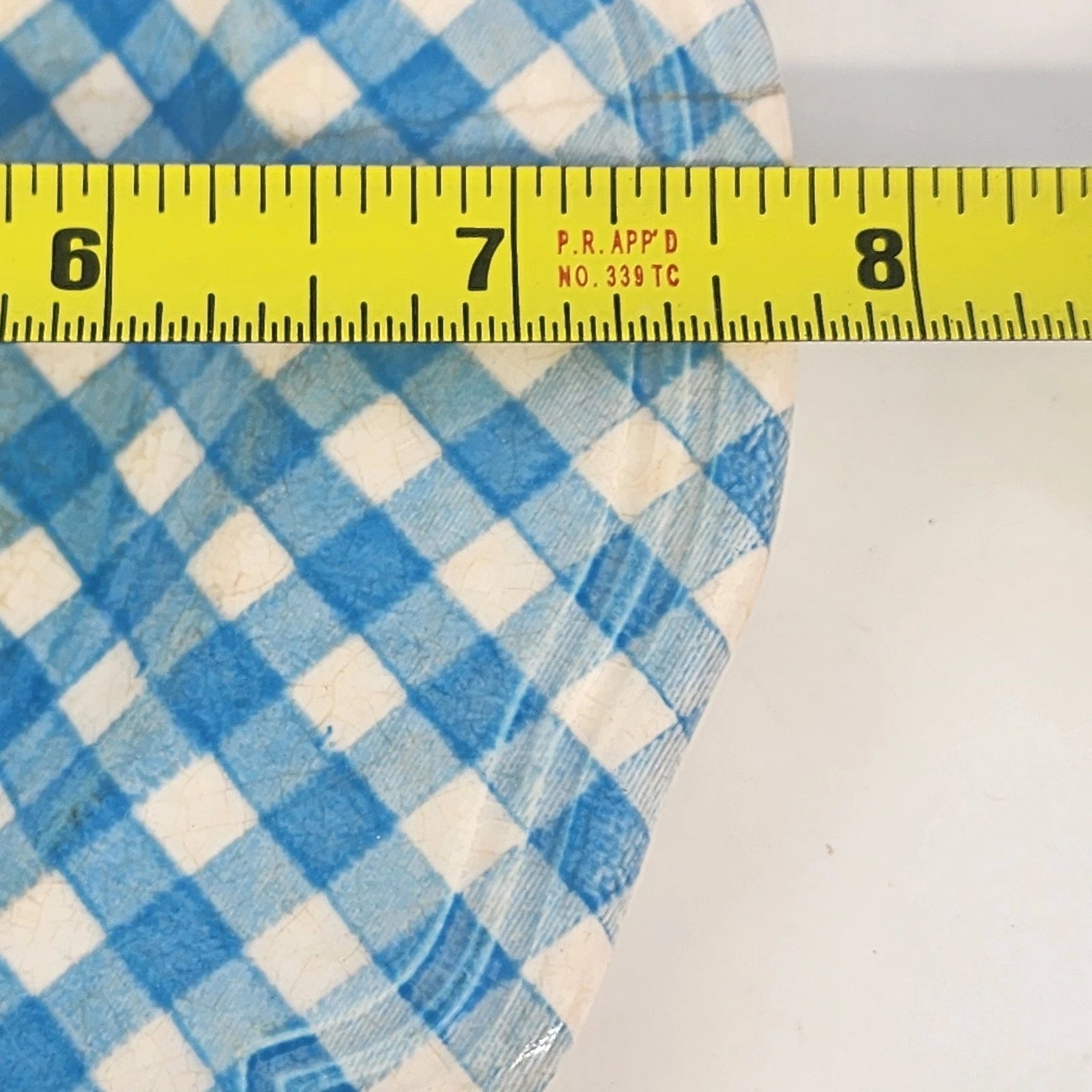 Add to your cottage-style table setting with this pair of vintage Linda Ironstone salad plates. Featuring the popular Pattern #4008, these plates showcase a timeless blue and white gingham checked border. Made in Japan, this heavy-duty ironstone is designed to be both oven-proof and dishwasher-safe. While these plates show characteristic vintage crazing, they remain sturdy and functional, making them a great choice for those looking to expand an existing set with authentic, character-filled pieces.