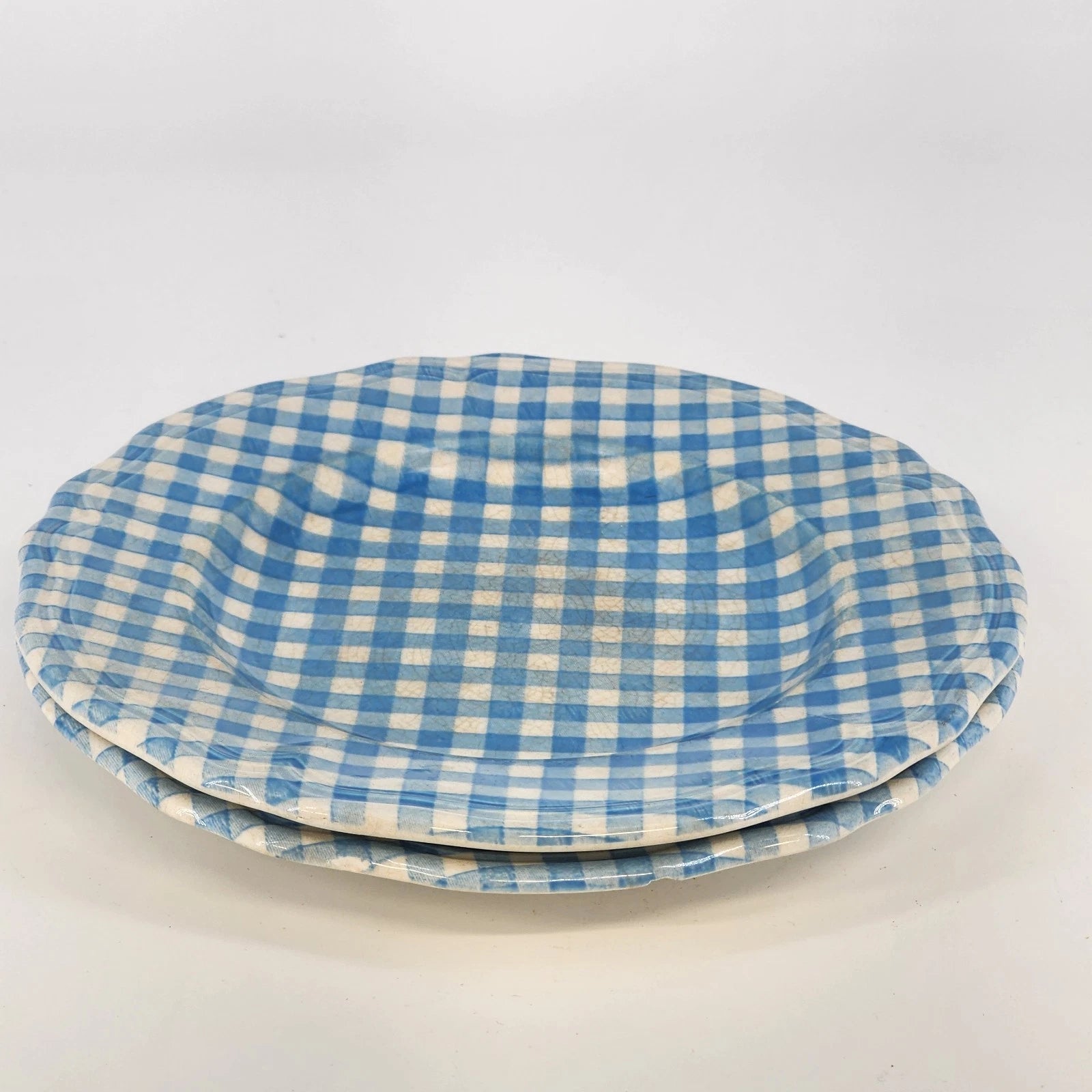 2 Linda Ironstone 4008 Salad Plates Blue White Gingham 7.5" Japan Crazing