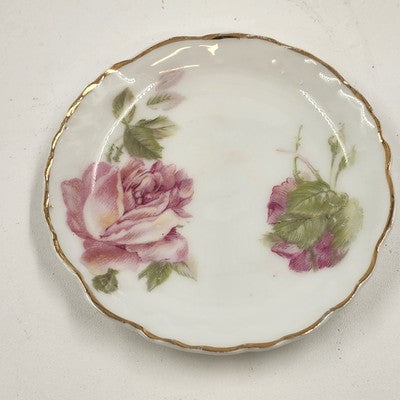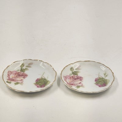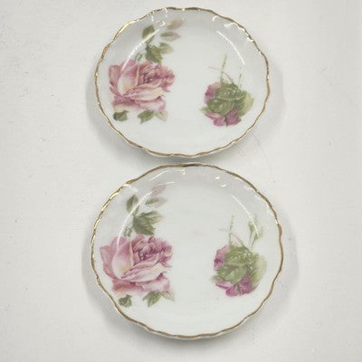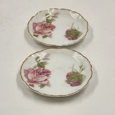 2 Rosenthal RC Monbijou Butter Pat Dishes Pink Roses Gold Scallop Bavaria