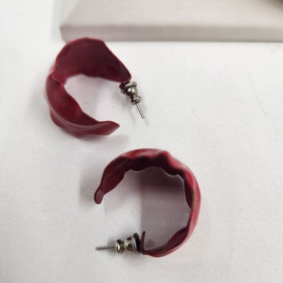 Design: Solid deep red wavy hoop earrings with a wide band.