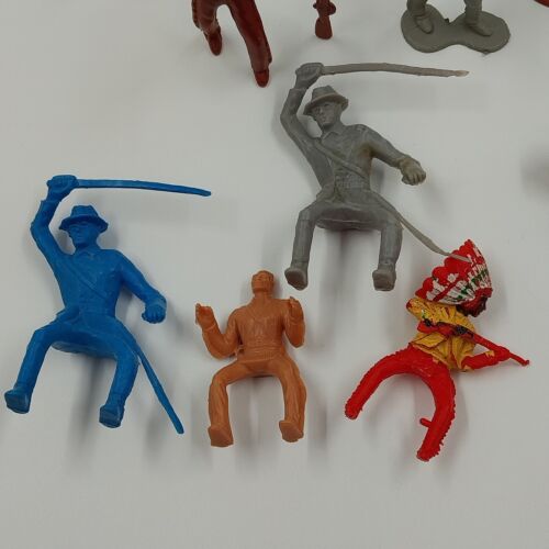 23 Plastic Toy Figures 1950s Cowboys Indians Soldiers Frontiersmen 2"-3"