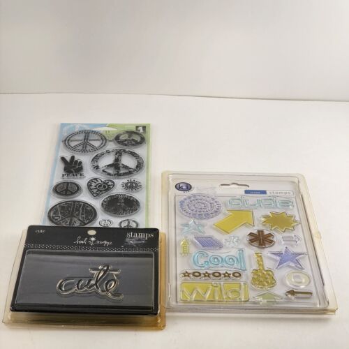 3 packs Clear Unmounted Stamps Peace Signs Cool Dude & Cute Vintage NOS Unopened
