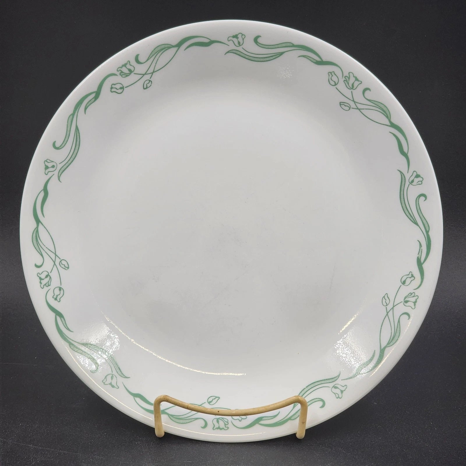 3 Corelle Emily Dinner Plates 10.25" Green Swirl Pattern Corning Ware USA