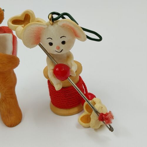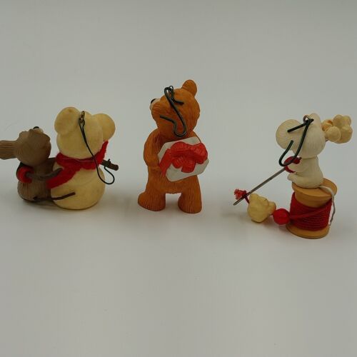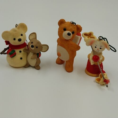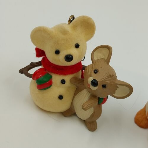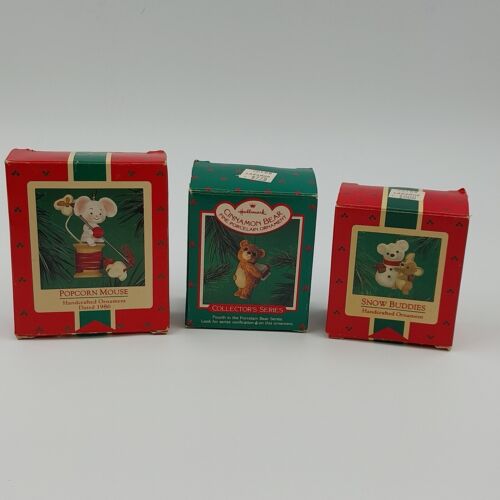 3 Hallmark Keepsake 1986 Ornaments CINNAMON BEAR Snow Buddies POPCORN MOUSE