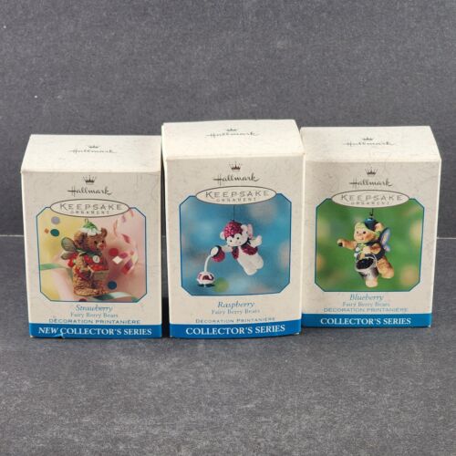 3 Hallmark Keepsake Fairy Berry Bears Ornaments Strawberry Blueberry & Raspberry
