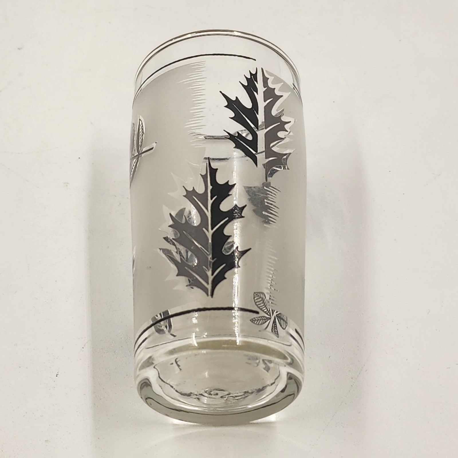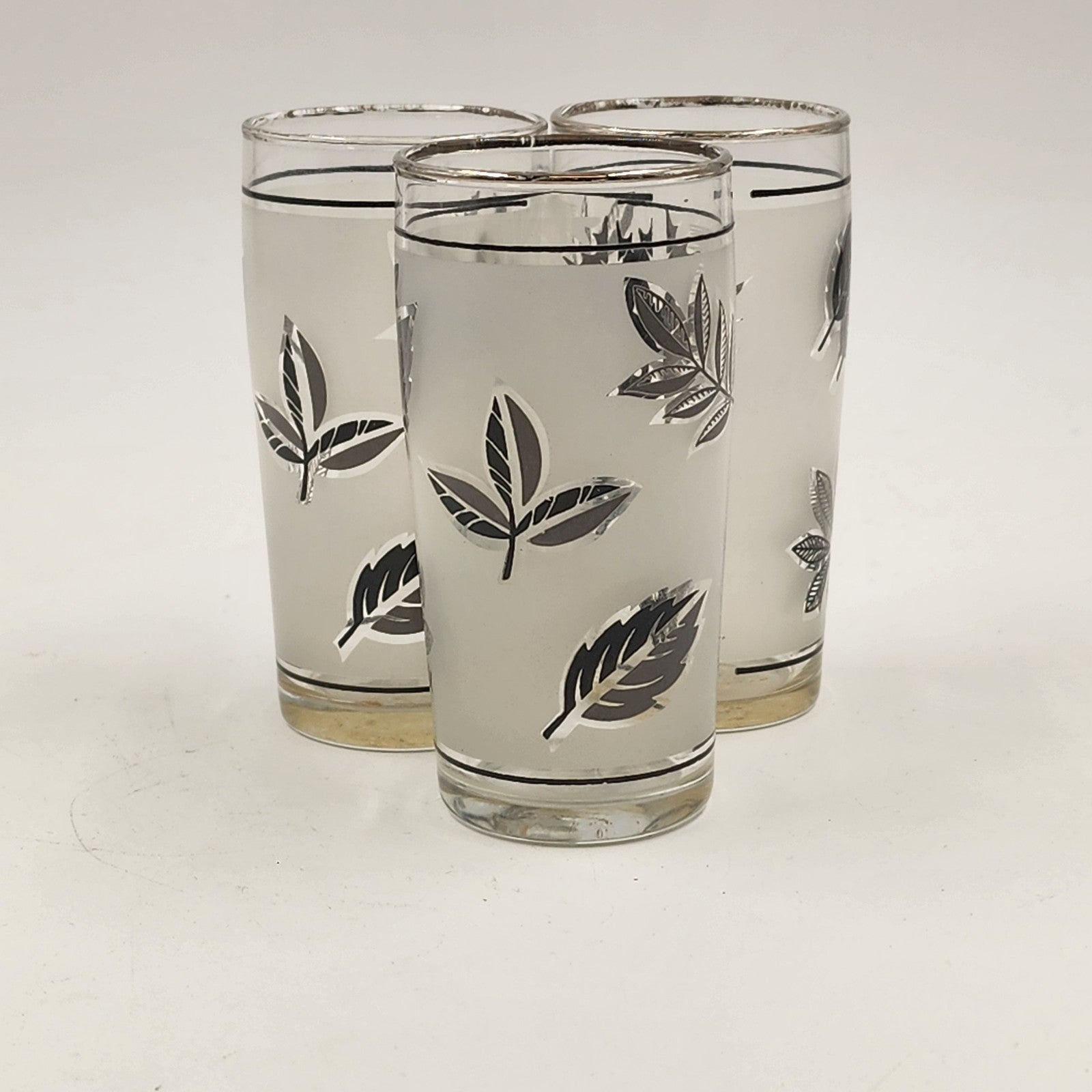 Set of 3 Libbey Frosted Silver Leaf Glasses Small Collins 4"x2" VTG
