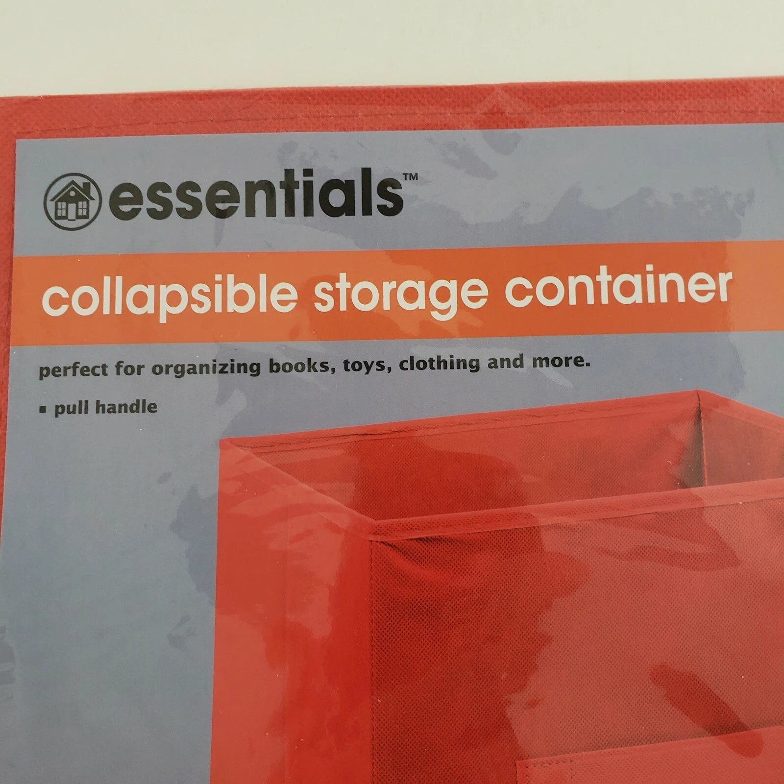 Set of 3 red collapsible fabric storage cubes from Essentials by Greenbrier International. These sturdy and convenient bins are perfect for organizing closets, shelves, offices, kids' rooms, toys, linens, and more. Folds flat for easy storage when not in use.