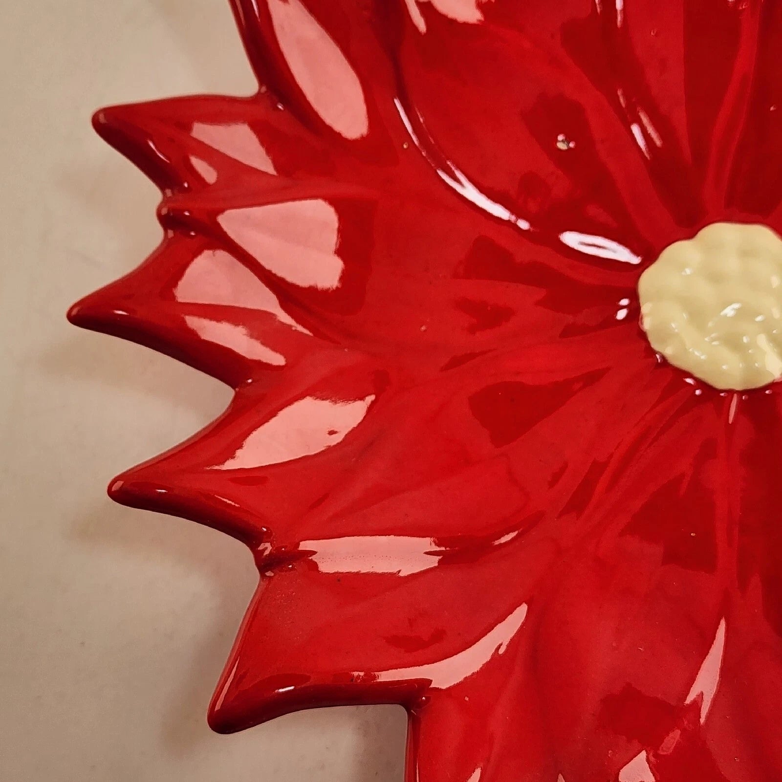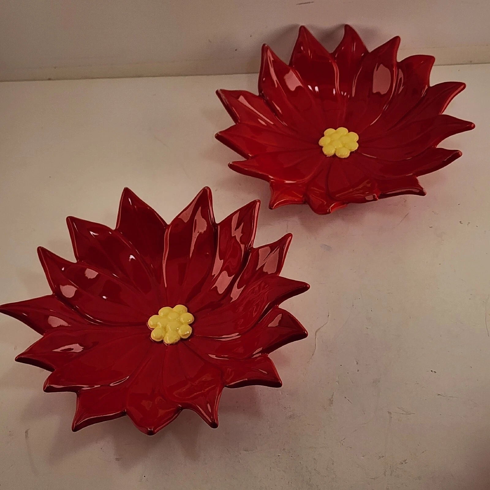 3 Poinsettia Flower Candy Dishes Christmas Atlantic Mold 10" and 8" Ceramic Vtg