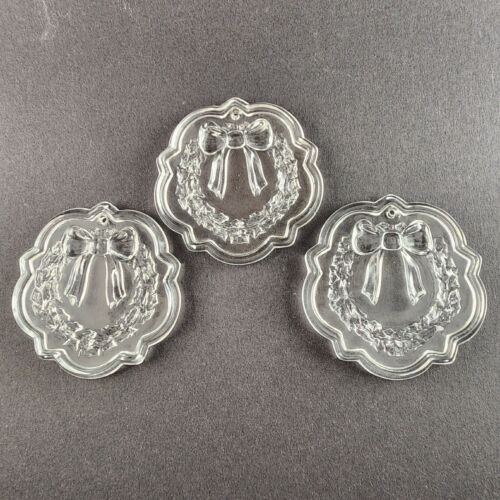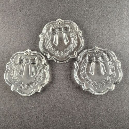 3 Vintage Fostoria Glass Lead Crystal Clear Wreath Christmas Ornaments 3¼" Wide