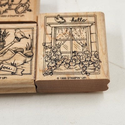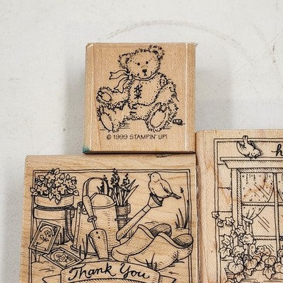 3 Wood Rubber Stamps Greeting Theme Bear Thank you Hello Stampin' Up! 1999