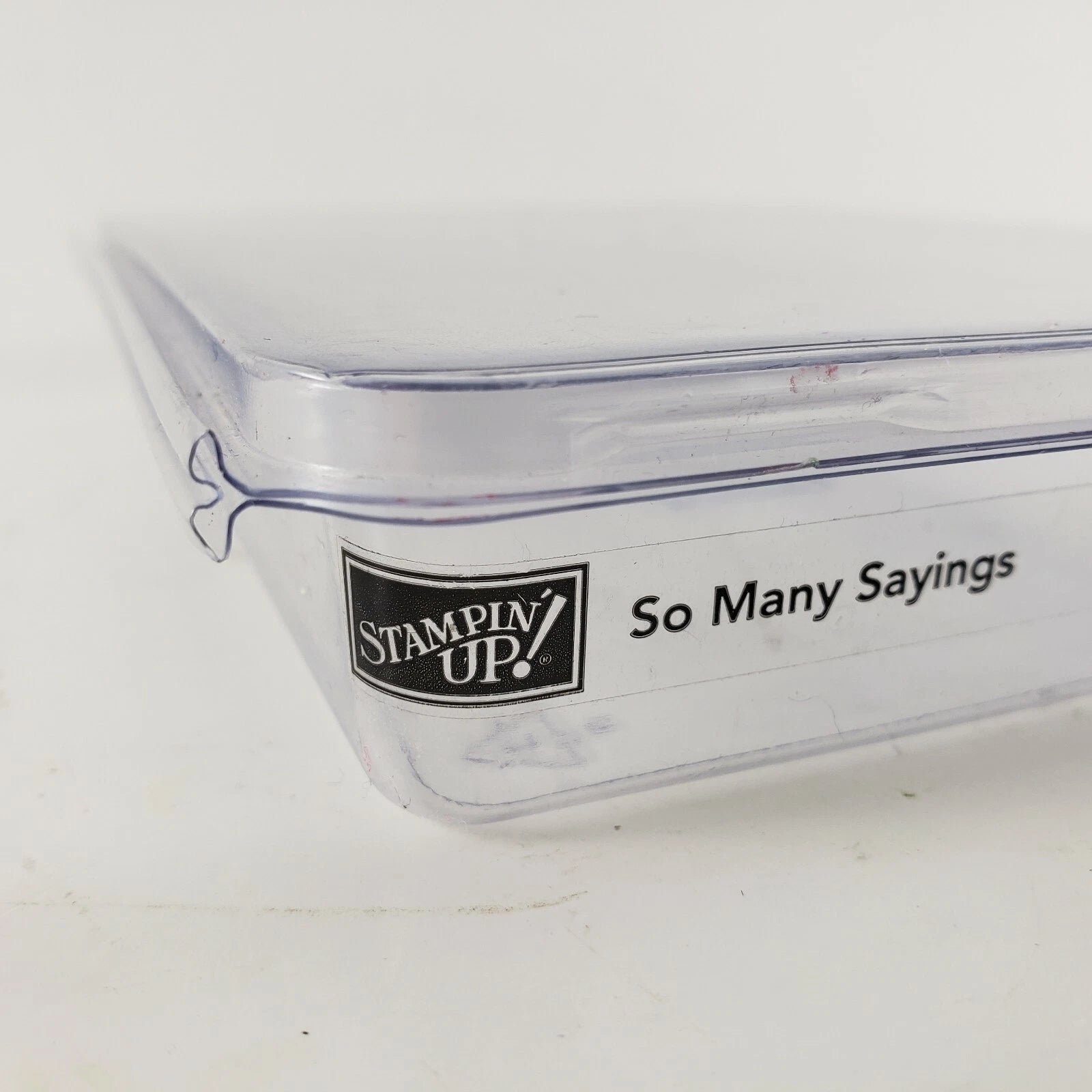 This Stampin' Up! "So Many Sayings" stamp set is perfect for cardmaking, scrapbooking, journaling, and personalized crafts. Featuring three wood-mounted rubber stamps with multiple sentiments, this retired 2007 set offers a versatile collection of phrases for holidays, celebrations, and everyday messages. Pre-owned but never used - a great find for stamp collectors and crafters!