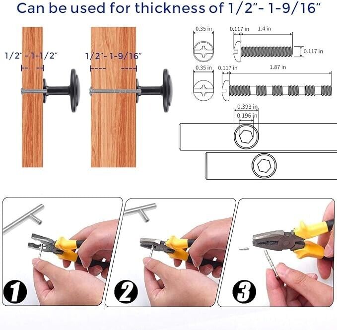 Longer screw size is 8-32 x 1-3/8" long