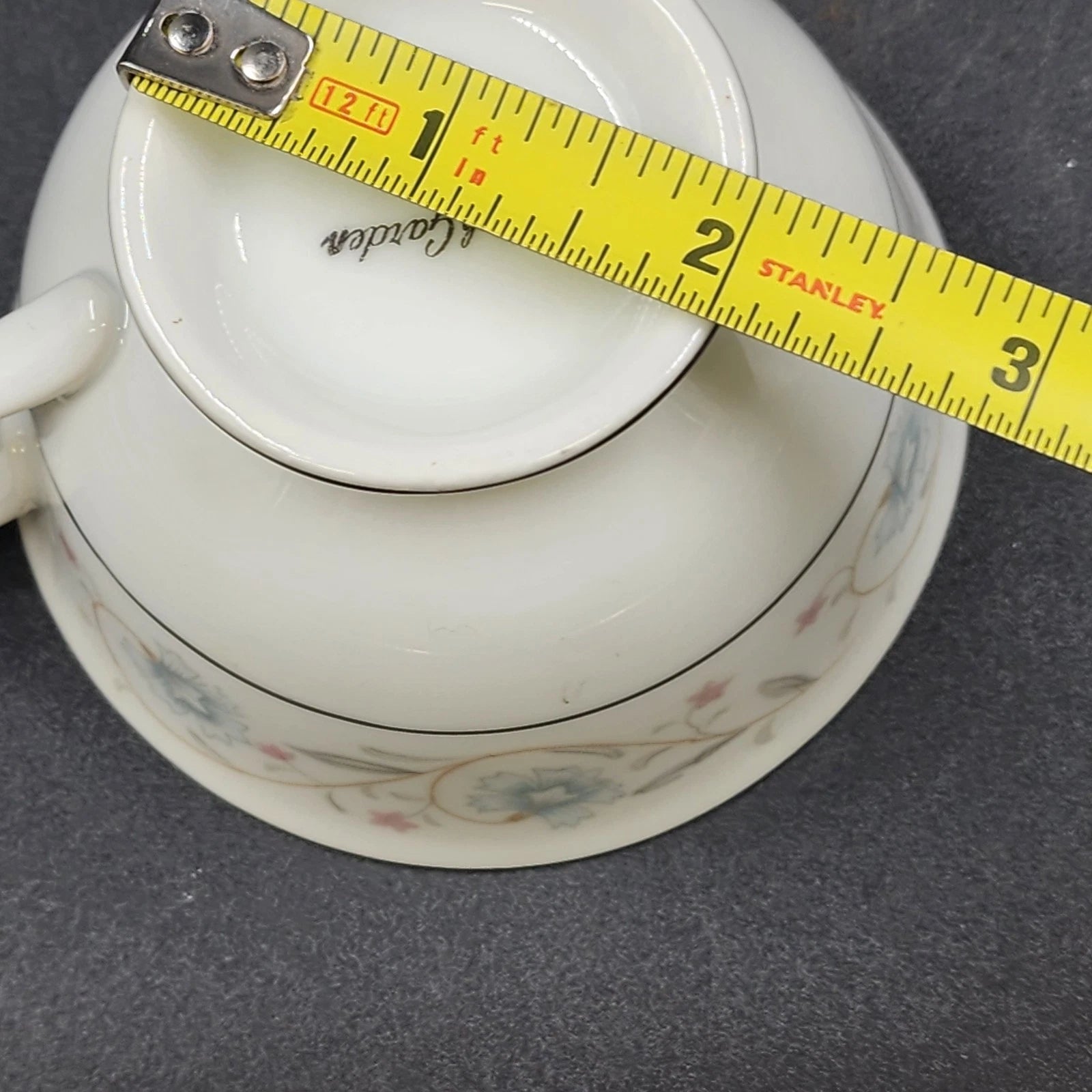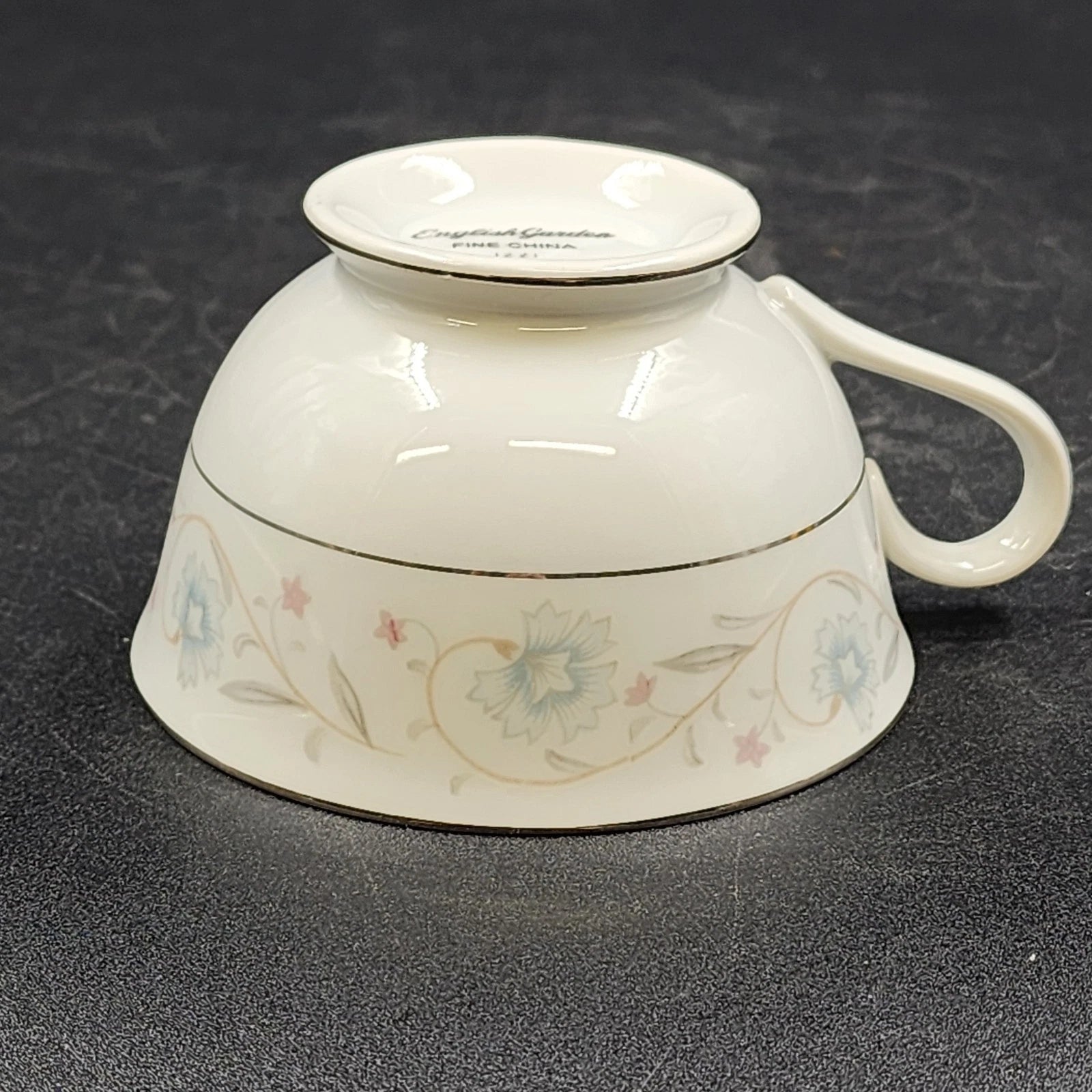 A beautiful vintage set of four English Garden Fine China footed cups, in the delicate Platinum or "1221" pattern. These exquisite cups were crafted in Japan and are part of a discontinued pattern, making them desirable for collectors.
