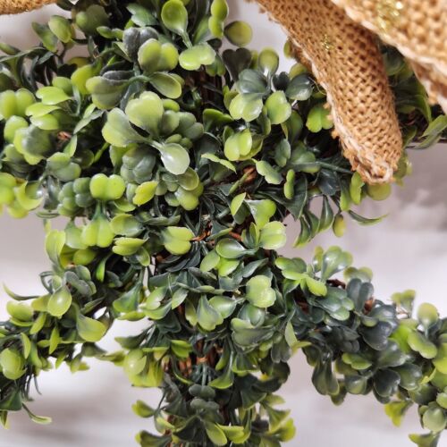 4 Leaf Clover Shamrock Shaped Wreath Plastic Greenery on Grapevine Back Bow 15"