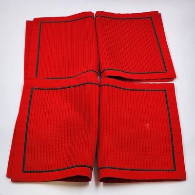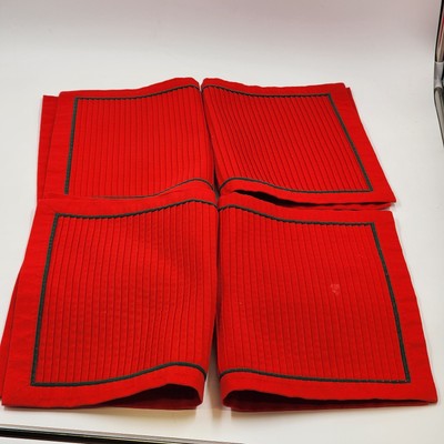 Set of 4 Solid Red Pleated Line Holiday Placemats with Green Piping 17.5"x12.5"