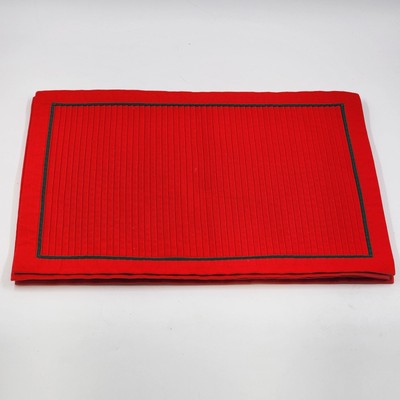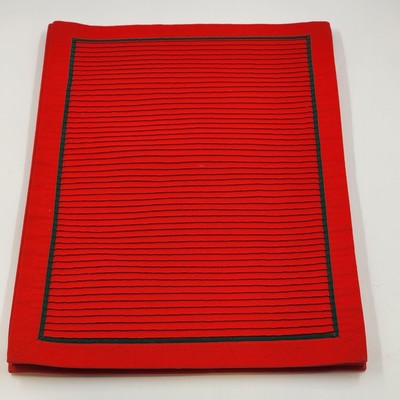 Add elegance to your holiday dining with this set of 4 solid red placemats featuring pleated lines and green piping for a festive touch. Perfect for Christmas and holiday gatherings.