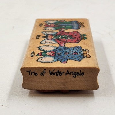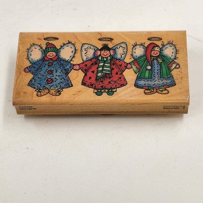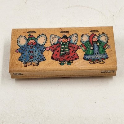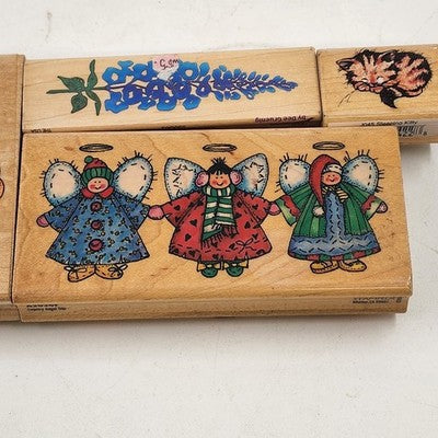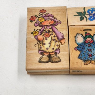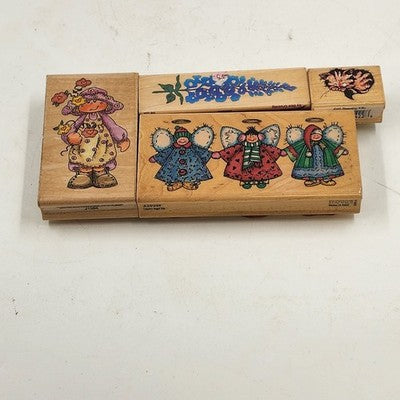 4 Wood Rubber Stamps Sleeping Kitty Country Angel Trio Flower Girl Bluebonnet