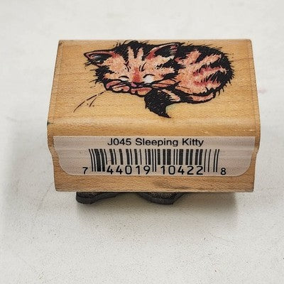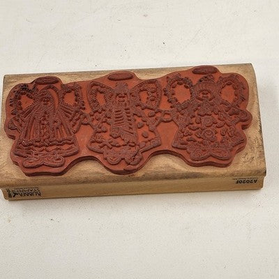 This set of 4 wood-mounted rubber stamps features a charming Fancy Pics theme with designs including a Sleeping Kitty, Country Angel, Trio Flower Girl, and Bluebonnet. Great for cardmaking, journaling, scrapbooking, and other creative crafts.