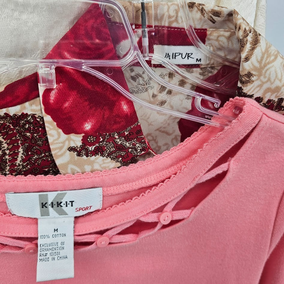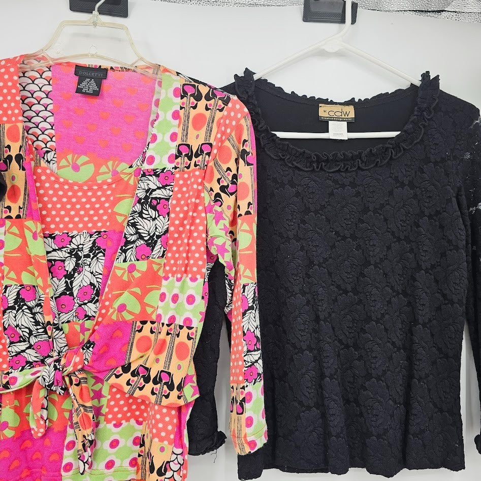 This lot includes a stylish mix of women's tops and sweaters in size Medium from brands such as Dolcetti, Jaipur, KiKit, CDW, and Style & Co. Perfect for everyday wear, layering, or adding variety to your wardrobe with quality pieces.