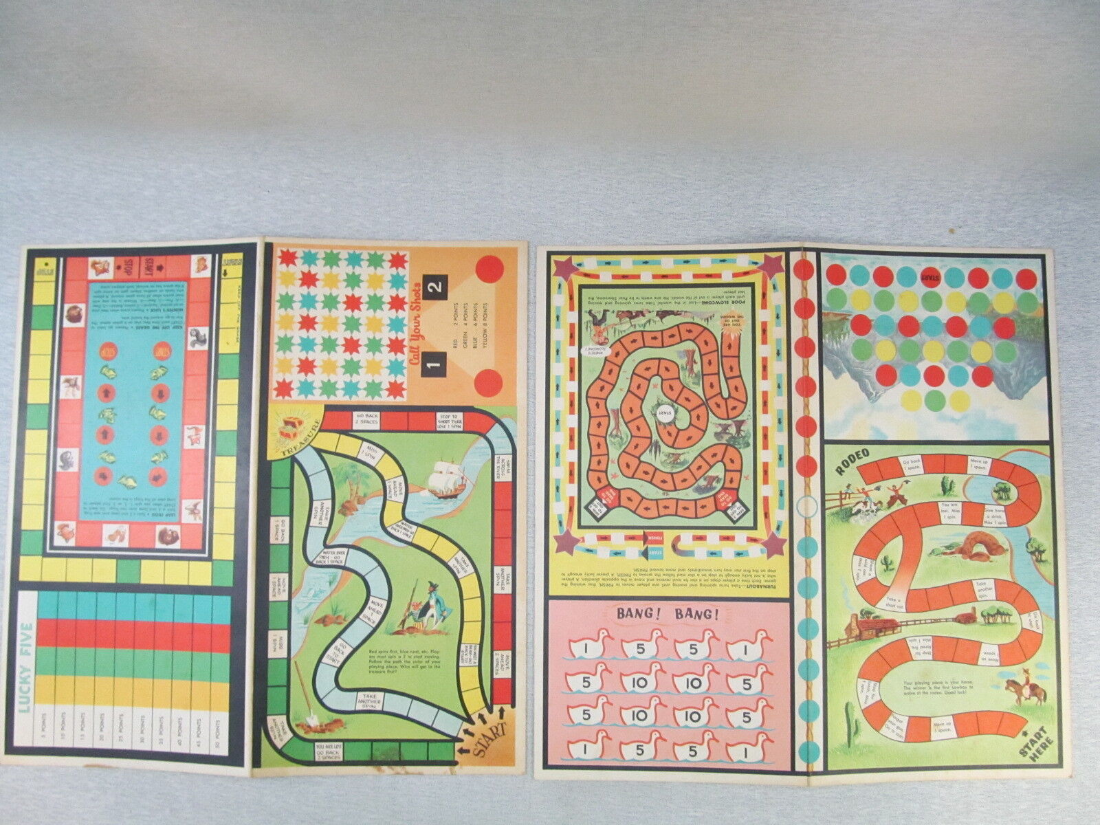 "54 Games" Vintage 1960 Whitman Publishing - Bingo - Sleeping Beauty Game - Pachisi - Pin the Tail on the Donkey - Post Cereal box back "Trapped" - and a few more