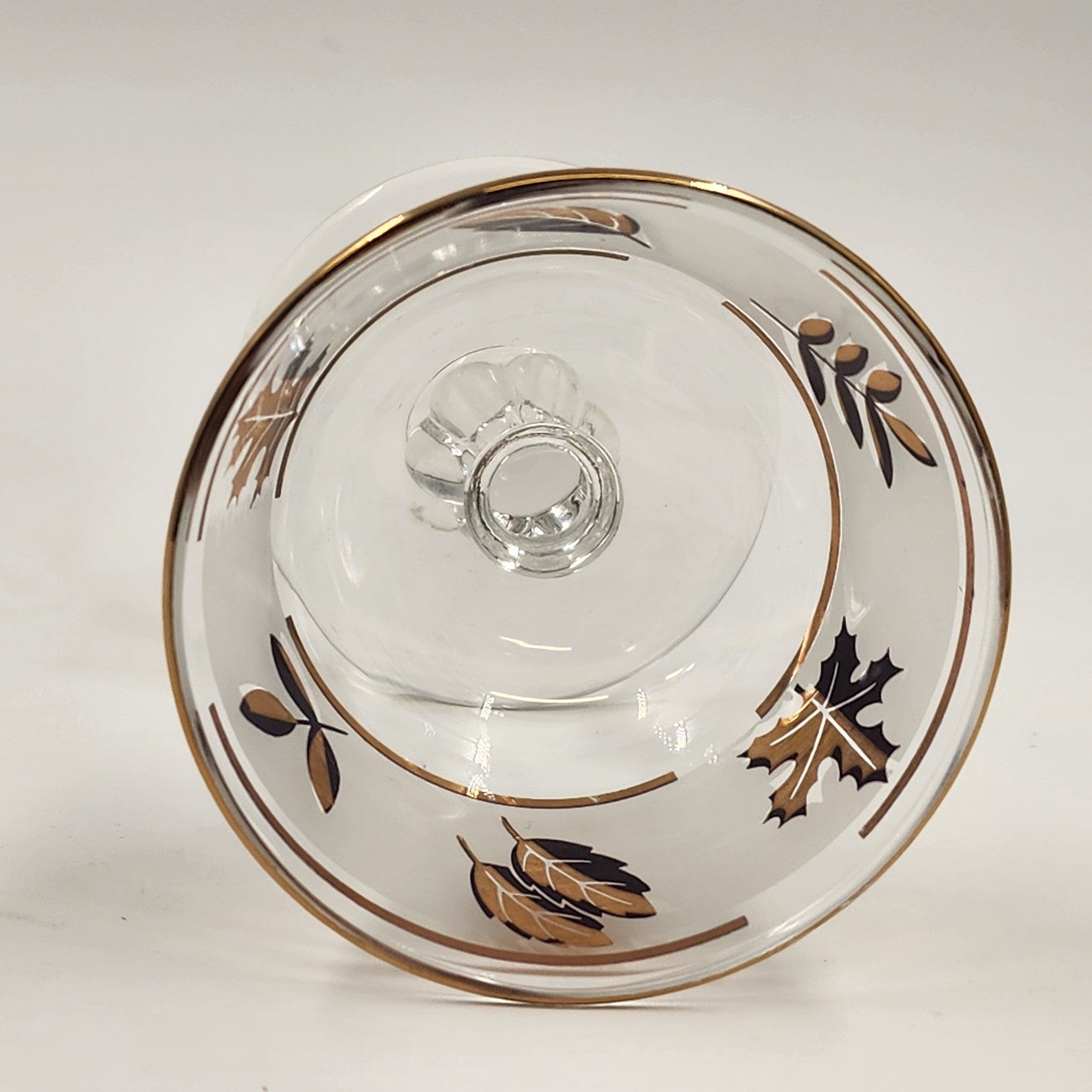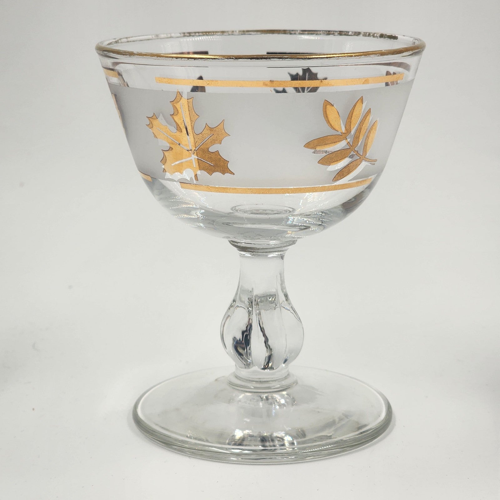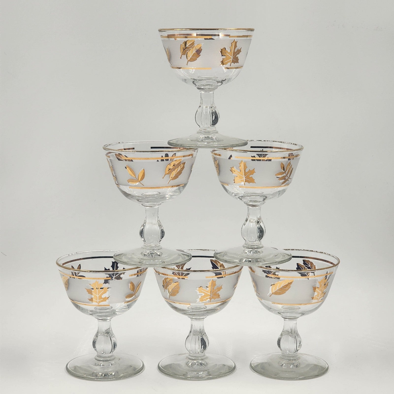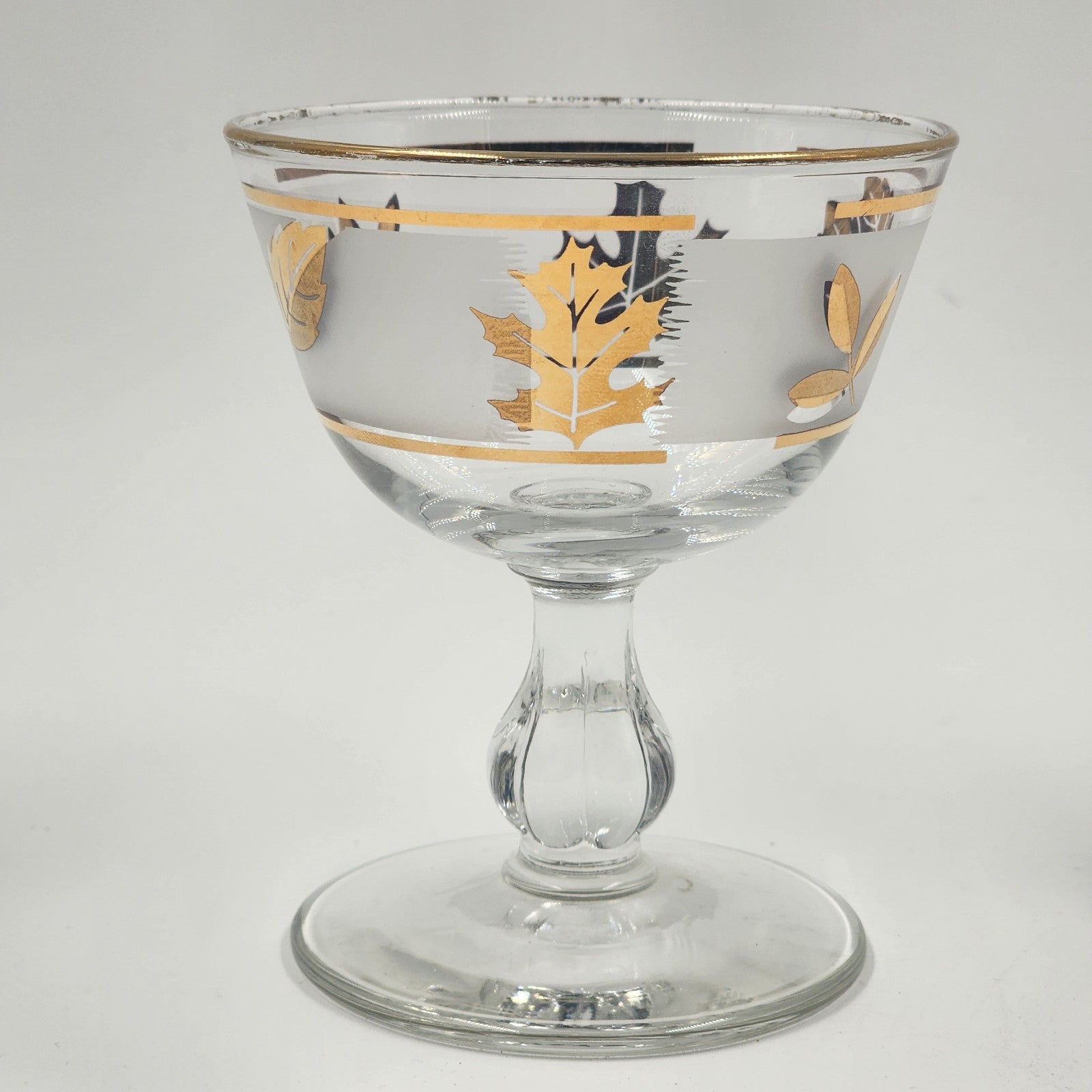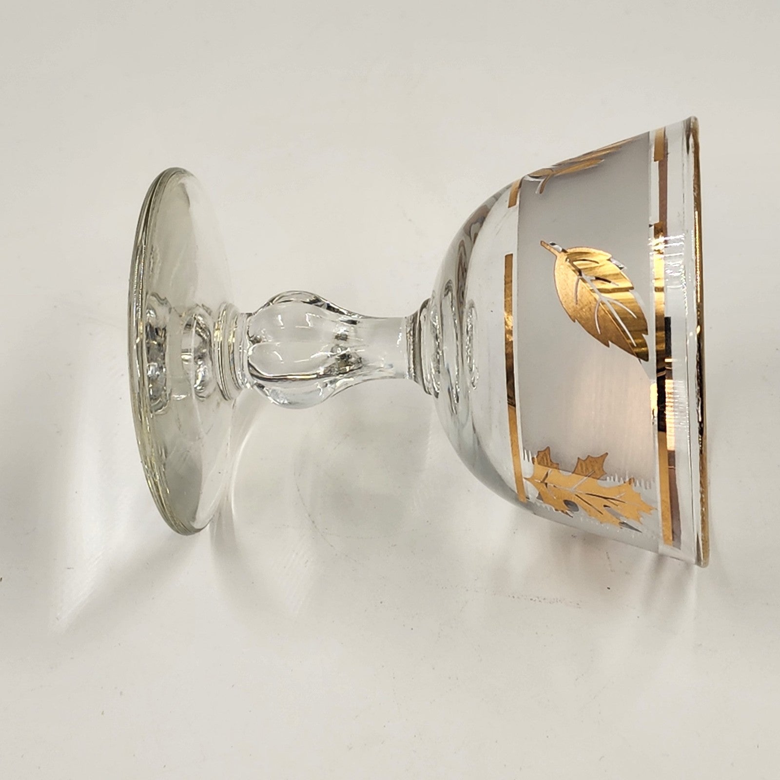 6 Libbey Stemmed Wine Glasses Gold Leaf Goblets Mid Century Modern 4.5"h