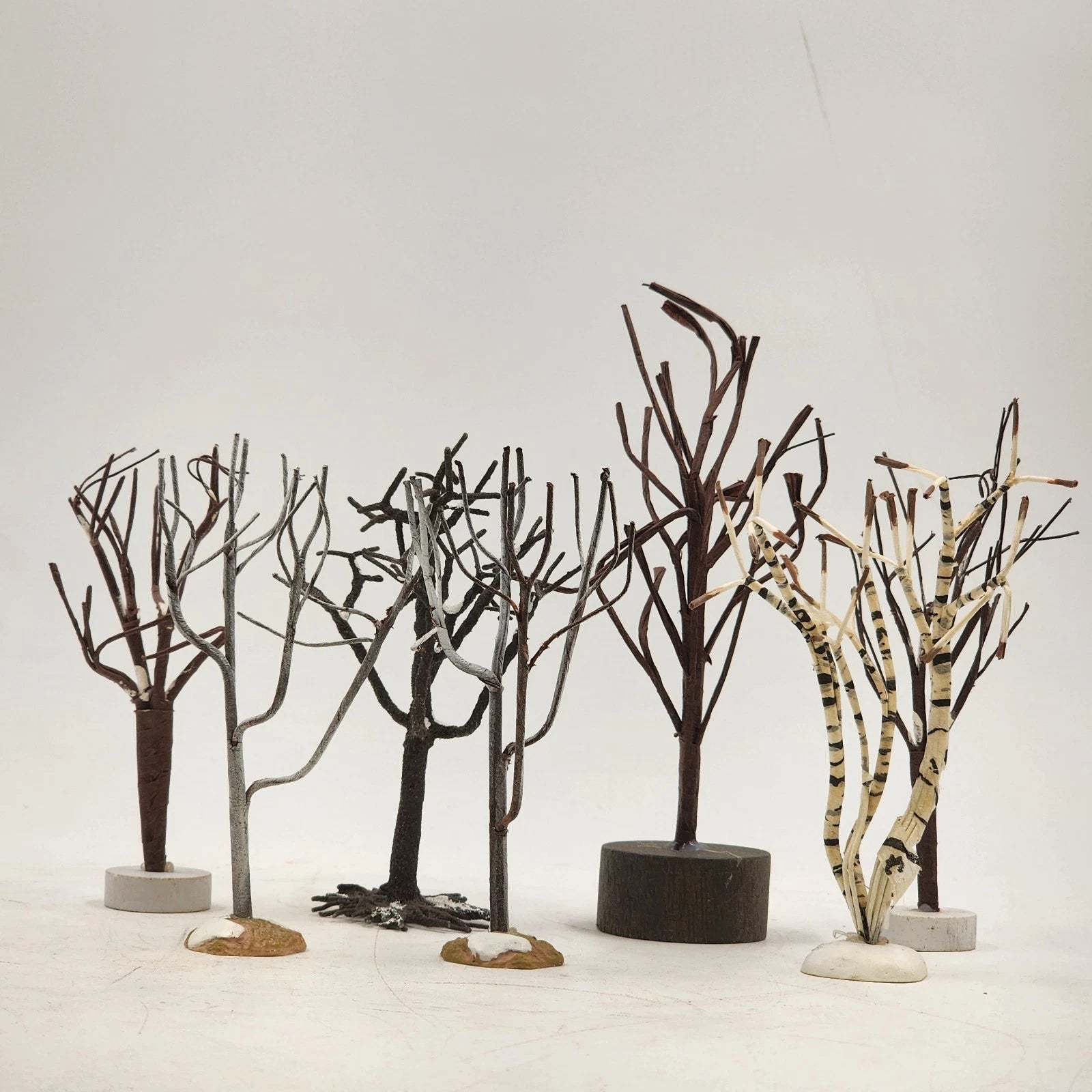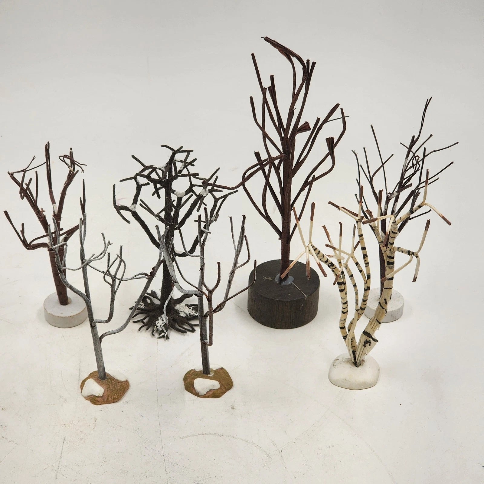 7 pc Christmas Village Trees Lot White Frosted & Bare Branch 5" Lemax Dept 56