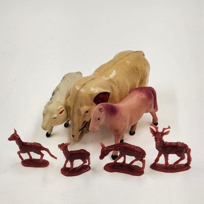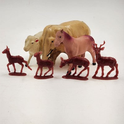 Lot of 7 Plastic Celluloid Blow Mold Animals Toy Figurines Vintage Japan 1950's