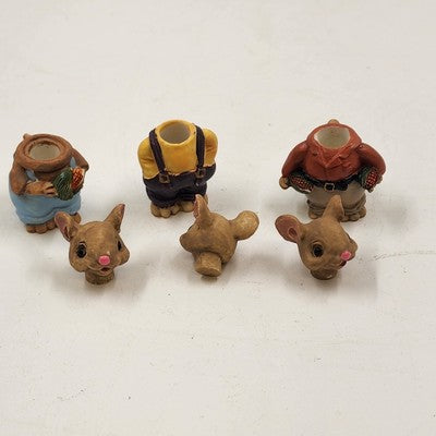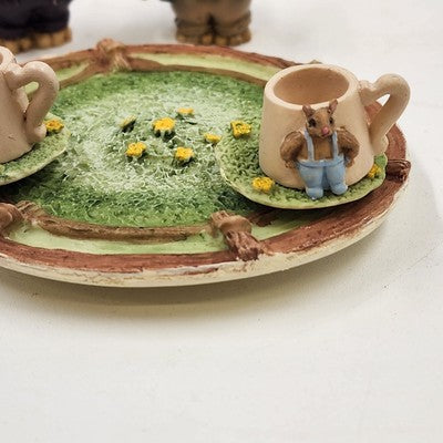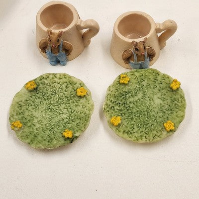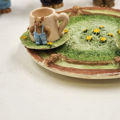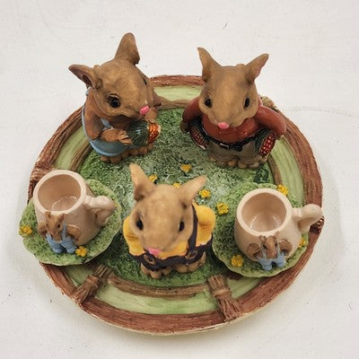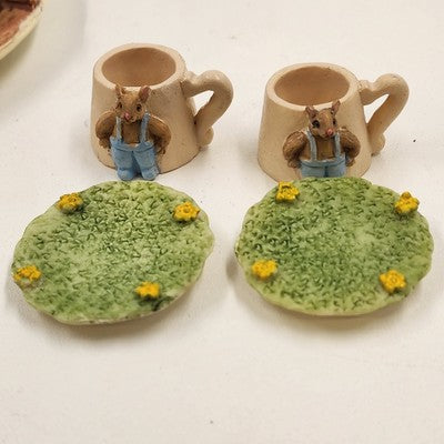 8 pcs Mini Mice Mouse Miniature Tea Set 4" Resin Vintage 1990s Collectible China