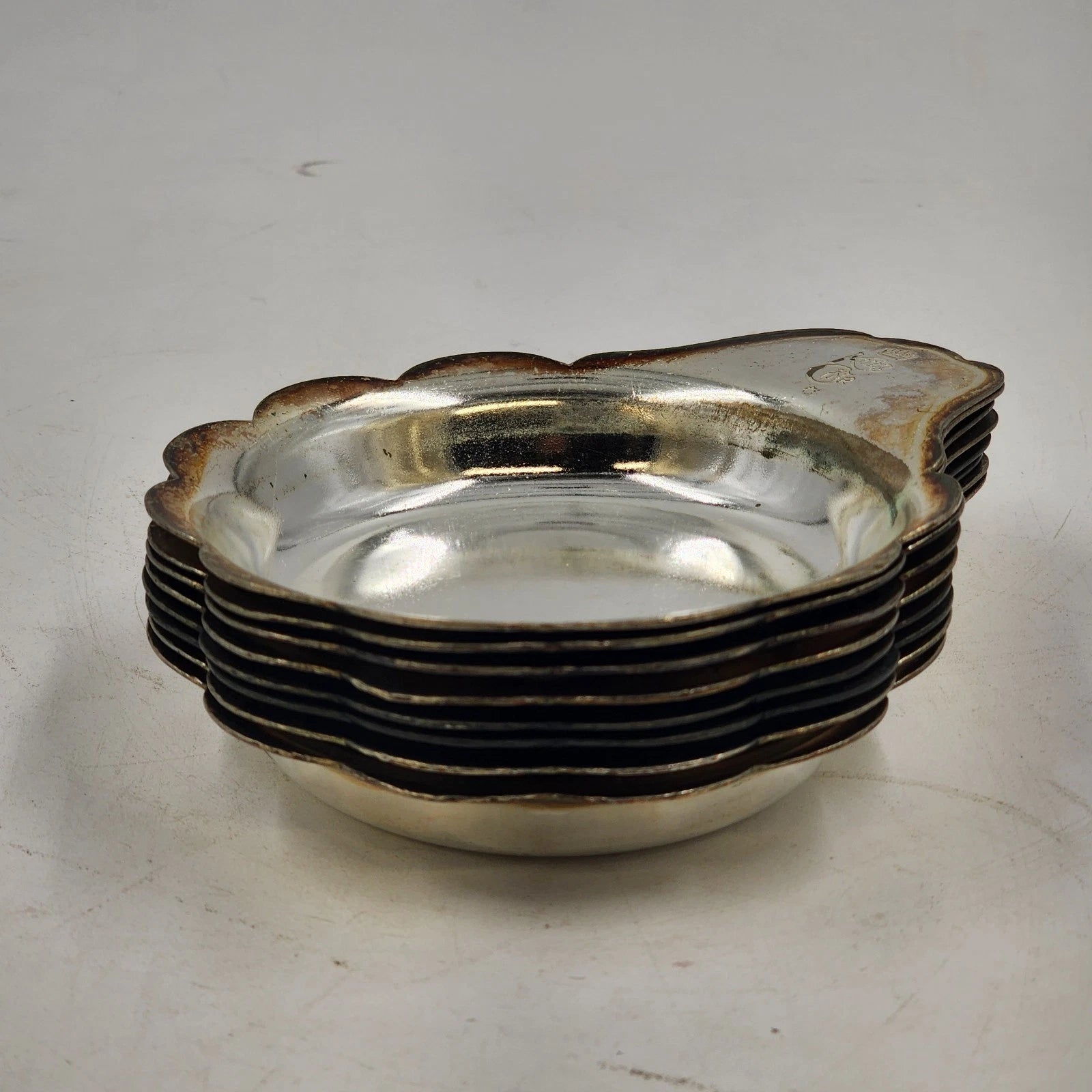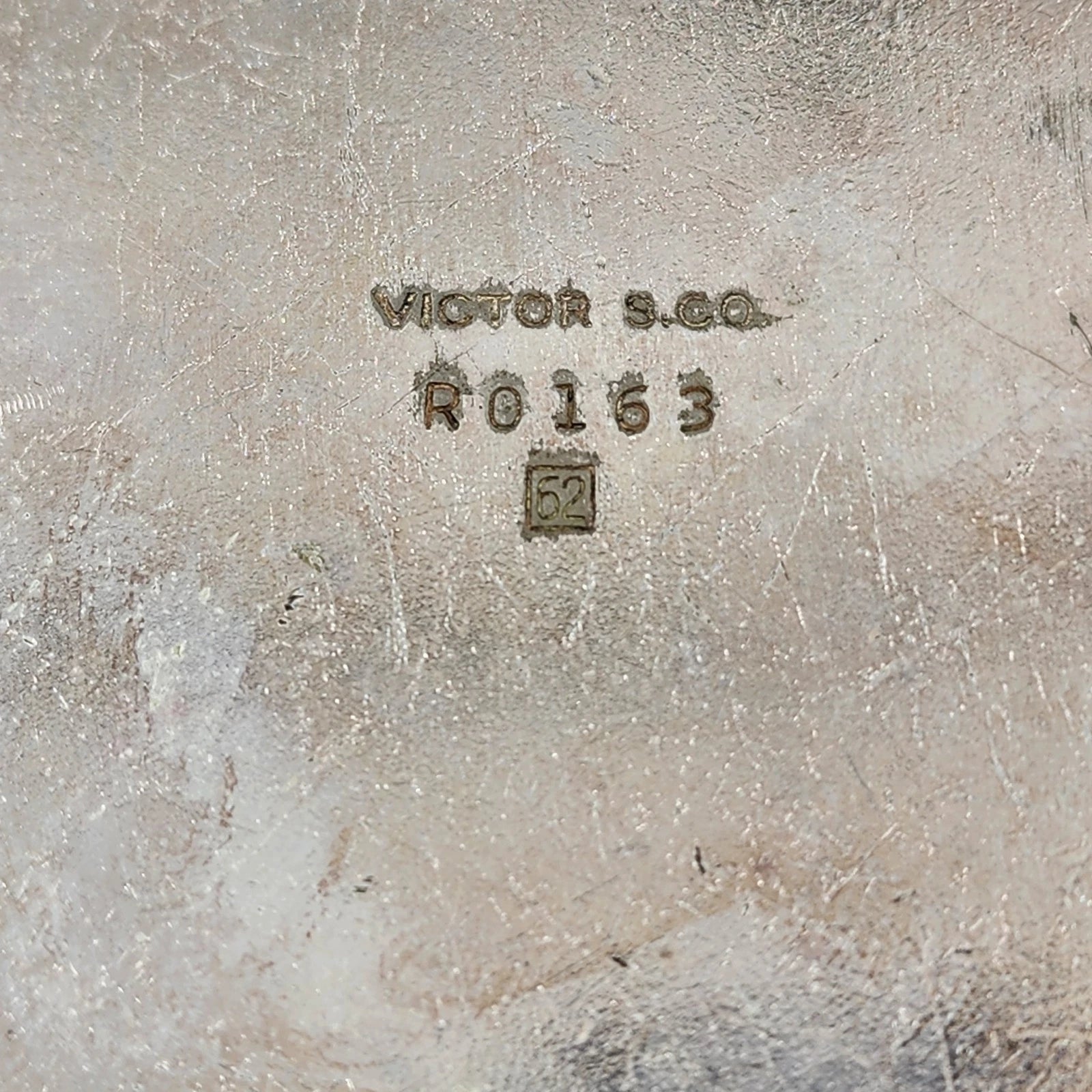 Add a touch of vintage elegance to your collection with this set of 8 silver-plated service trays from Victor S. Co., King Cole. Each tray is beautifully crafted and ideal for serving or display. The pieces show natural tarnish consistent with age, enhancing their antique charm. Perfect for collectors, catering service, or classic home décor.
