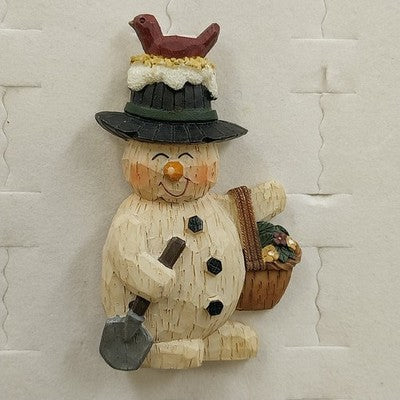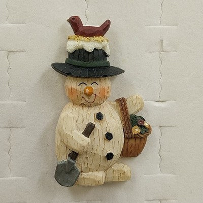 Acrylic Snowman Brooch Lapel Pin with Shovel Bird & Basket Christmas 2.5"